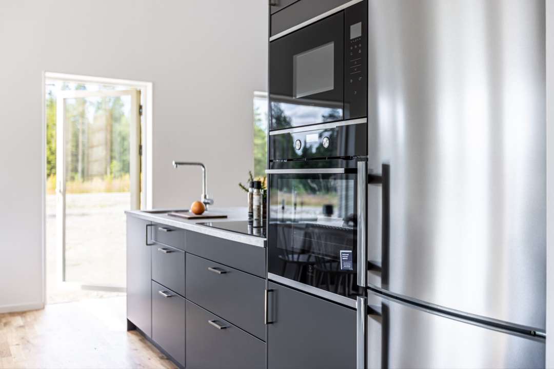 Kök: Ett modernt kök utrustat med högkvalitativa vitvaror, inklusive inbyggd ugn, mikrovågsugn, induktionshäll, diskmaskin och kyl/frys. Köket har en stor köksö som fungerar som både arbetsyta och samlingspunkt.