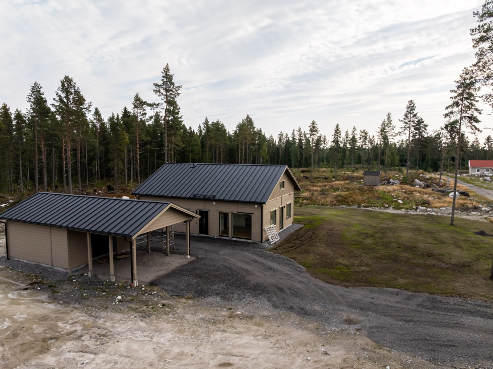 Byggnadstyp1½-plansvillaByggnadsår2023FasadTräStommeTräFönster3-glasBjälklagTräTakPlåtGrundPlatta på mark med ingjuten golvvärmeUppvärmningFrånluftsvärmepumpVatten/avloppSamfällt vatten från gemensam borrad brunn. 3-kammarbrunn för avlopp.VentilationFrånluftsventilationÖvriga byggnader/utrymmenGarage på ca 30 kvm med carportBilplats