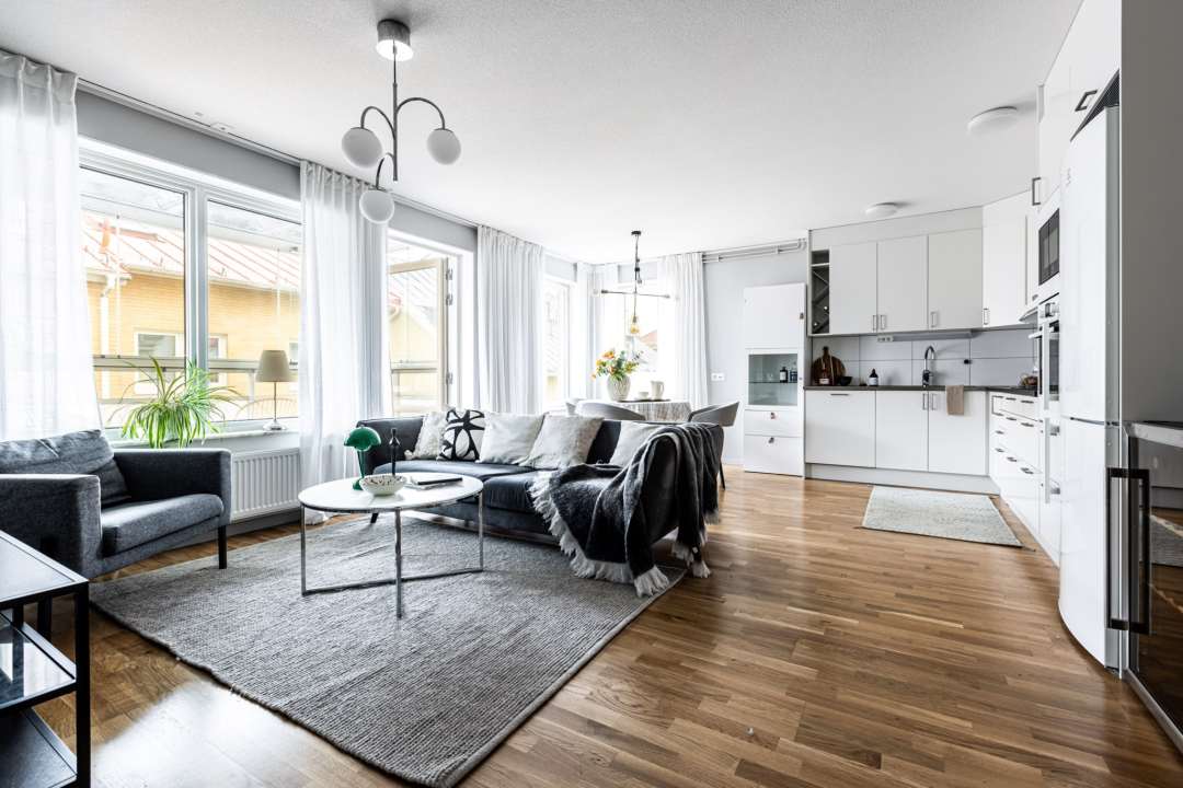 I vardagsrummet ges ni goda möbleringsmöjligheter med plats för soffa, favoritfåtöljen och tv-bänk. Från vardagsrummet tar ni er ut på den inglasade balkongen som blir lite av ett extrarum under sommarhalvåret.