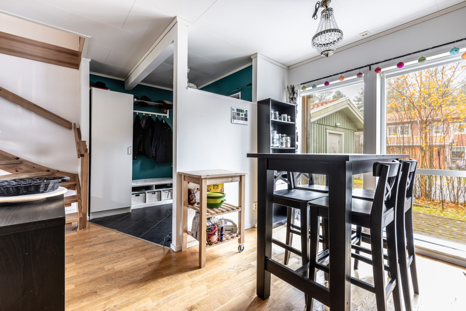 Som gavelradhus får du fördelen av extra ljusinsläpp, större tomt och en mer privat känsla. Den gröna trädgården erbjuder både plats för lek och odling. Här bor du med närhet till skolor, förskolor, service, matbutik och samtidigt med skogen runt hörnet. Ett optimalt hem för dig som vill ha både stadens bekvämligheter och naturens lugn inom räckhåll.