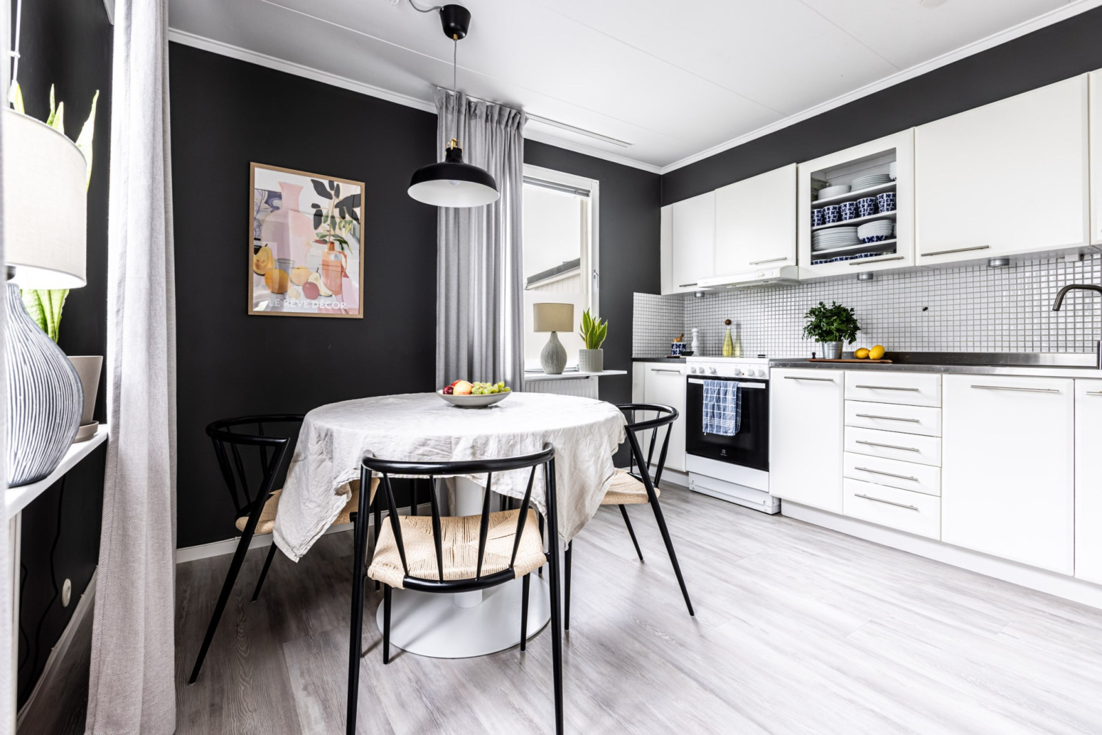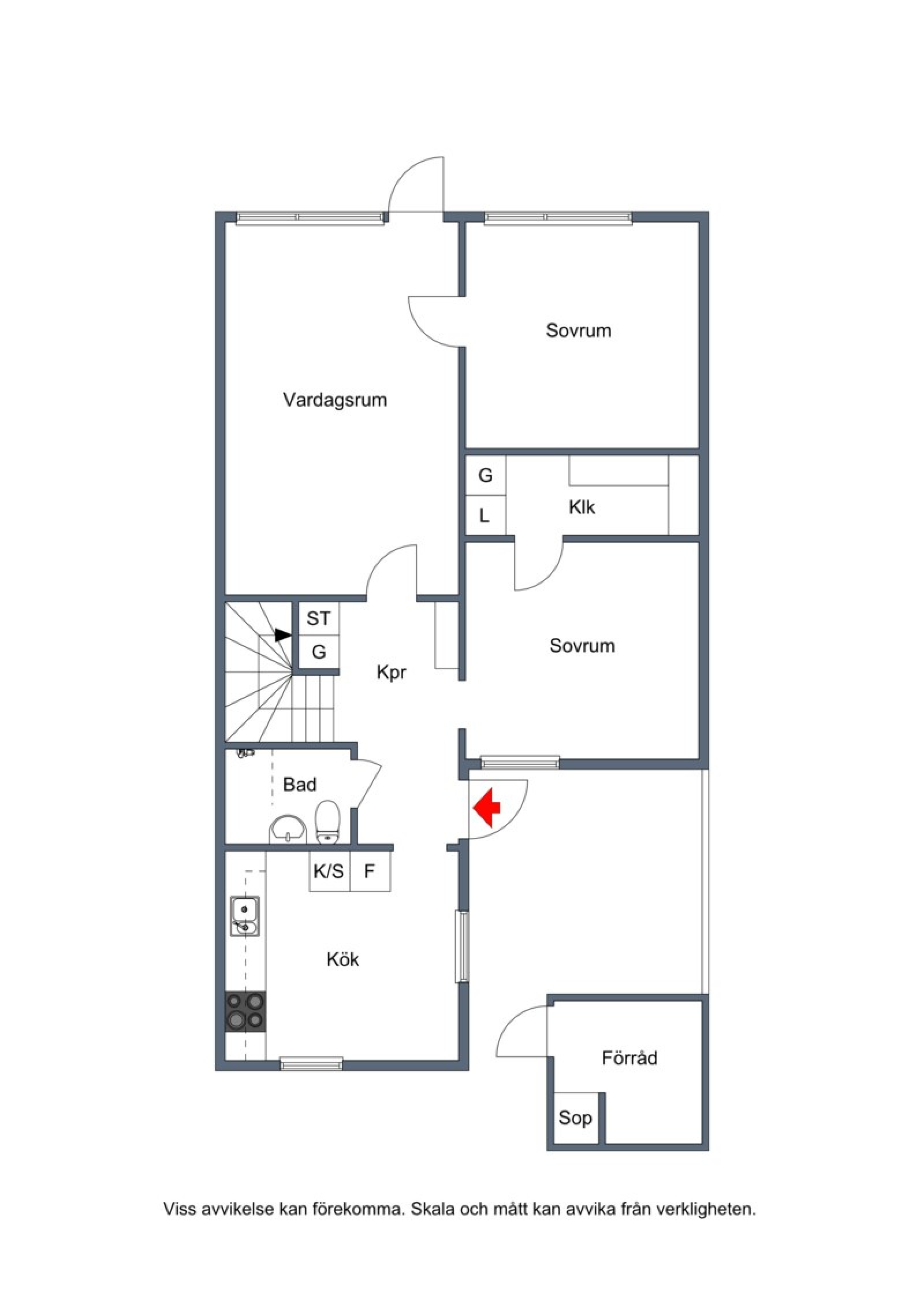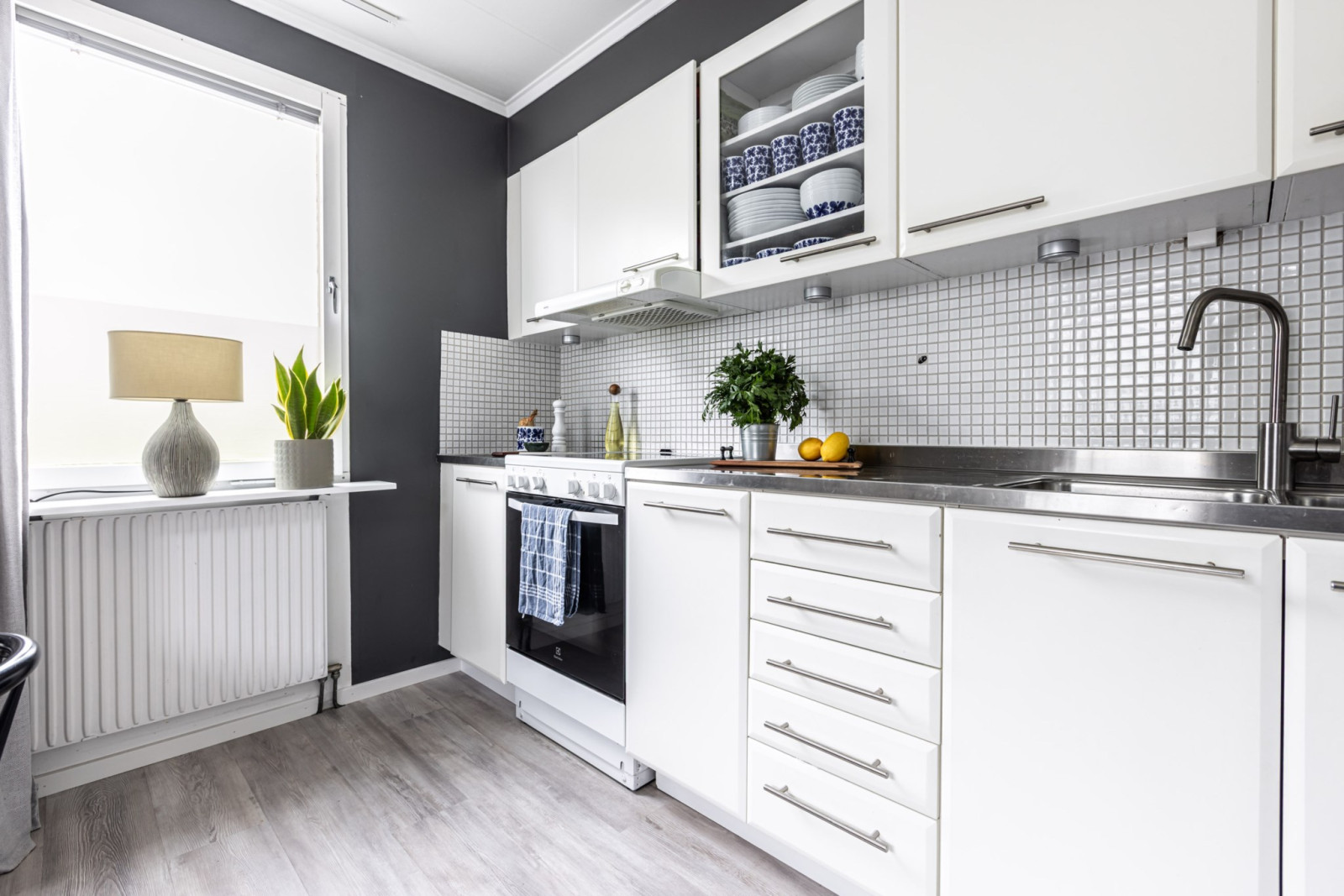 Entréplanet bjuder på ett separat kök med fönster mot framsidan – här finns gott om plats för ett rejält matbord. Från köket når du en rymlig hall som binder ihop bostaden och leder vidare till det stora vardagsrummet. Här flödar ljuset in från baksidan och via altandörren tar du dig ut till den insynsskyddade uteplatsen – en självklar plats för sommarens middagar och avkoppling.