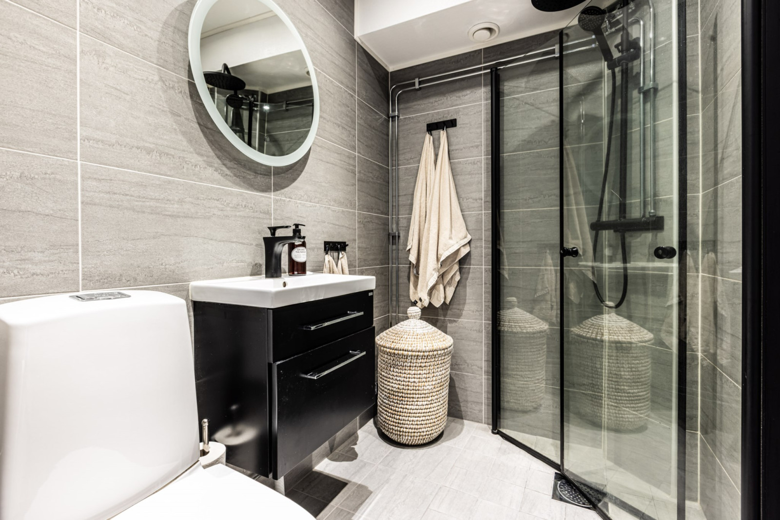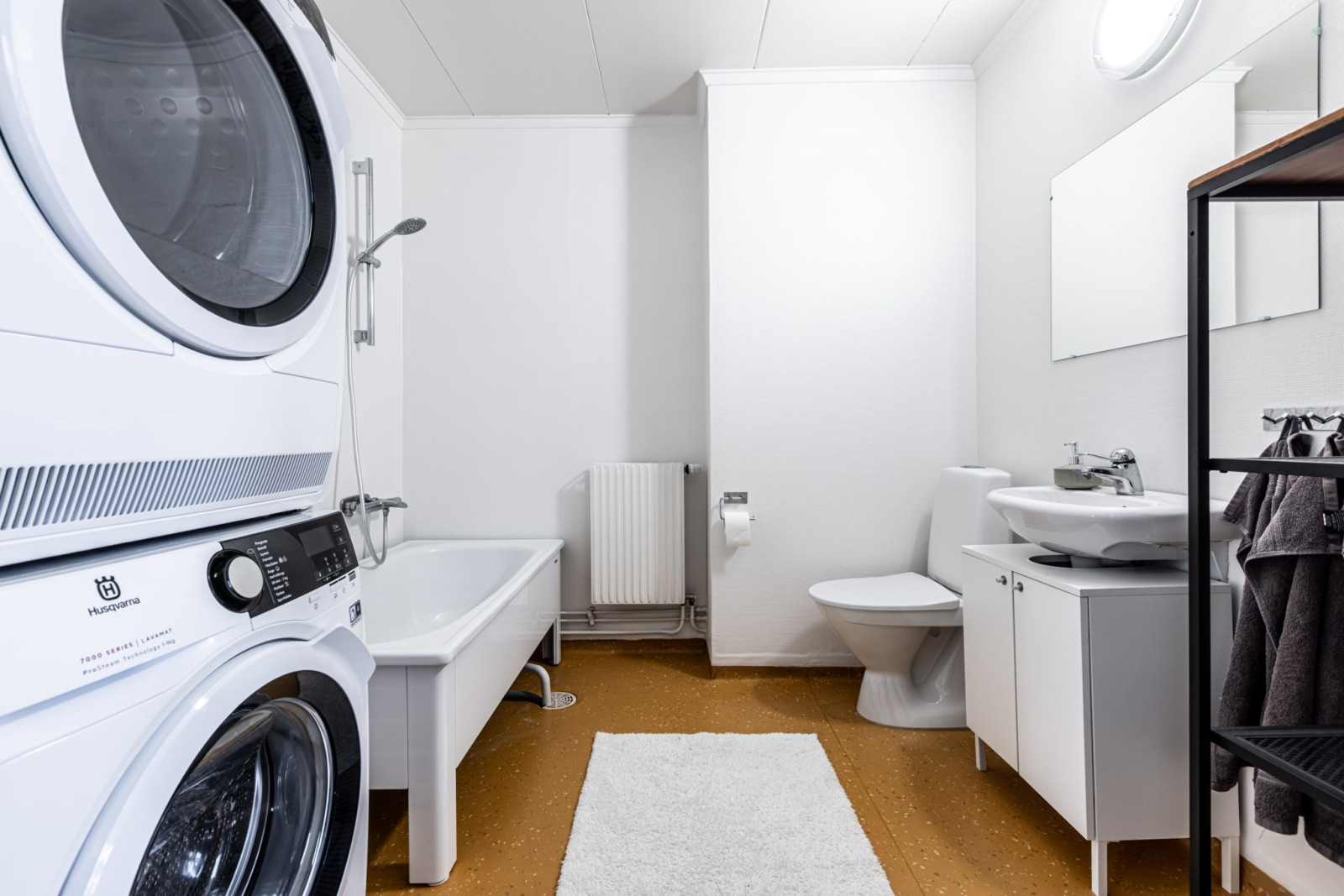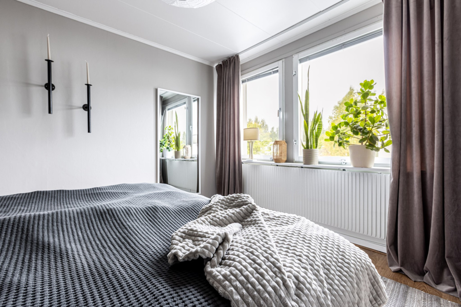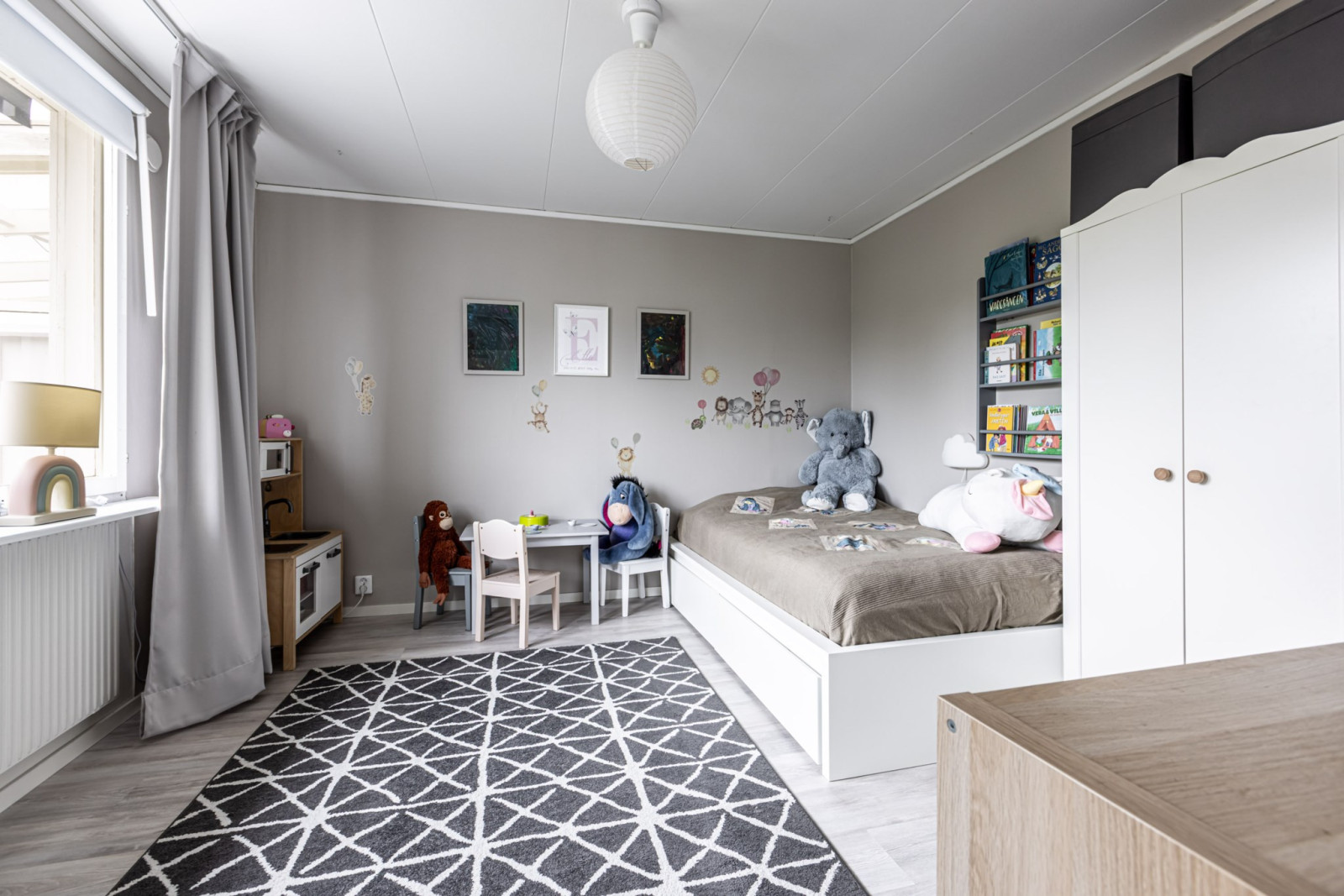 På entréplanet finns även två sovrum samt ett badrum. På övre plan väntar ytterligare två sovrum, ett mindre allrum/social yta som kan fungera som tv-hörna, arbetsplats eller lekrum, samt ett rymligt badrum med både tvättmaskin och torktumlare som gör vardagen smidig.