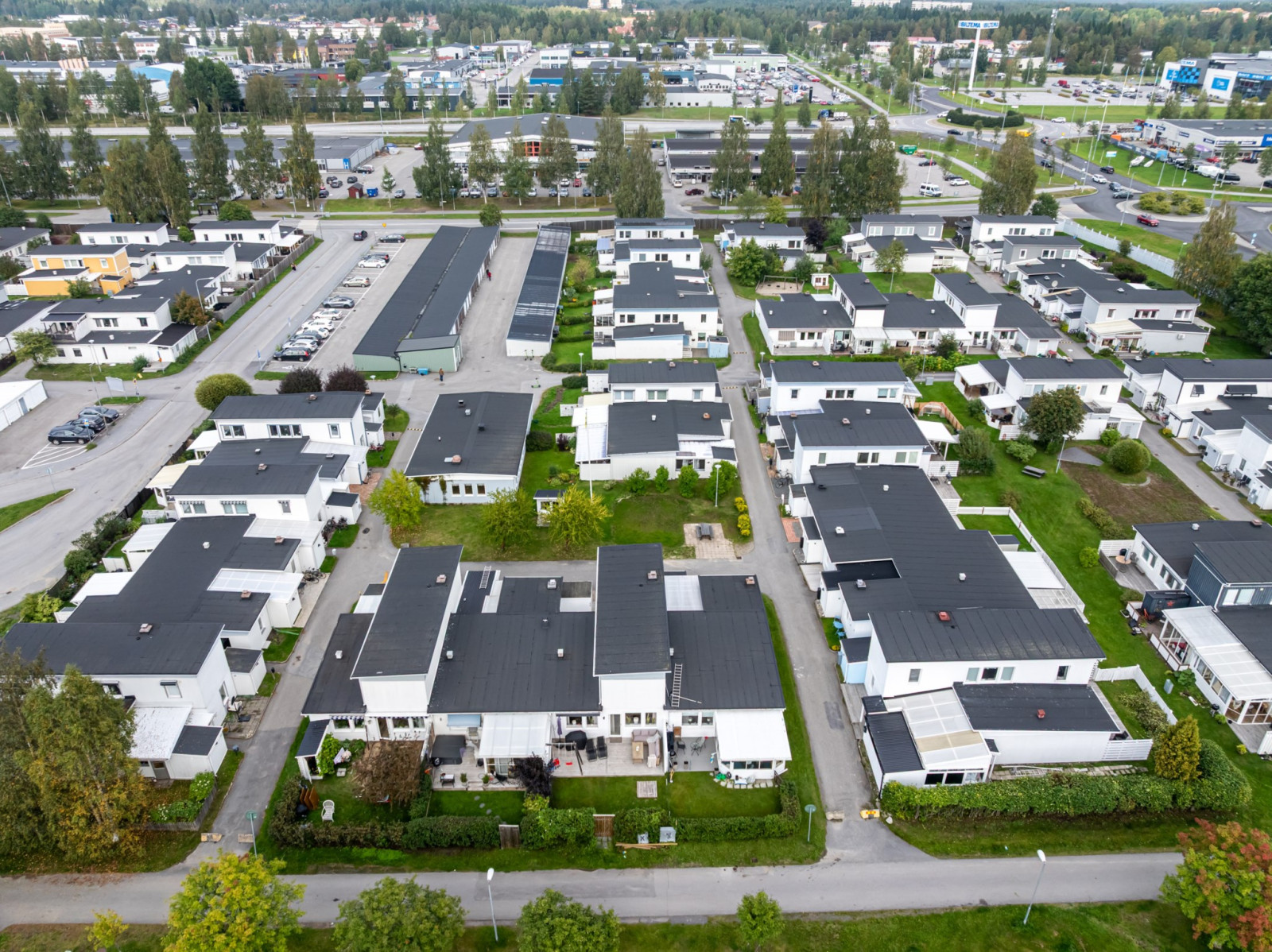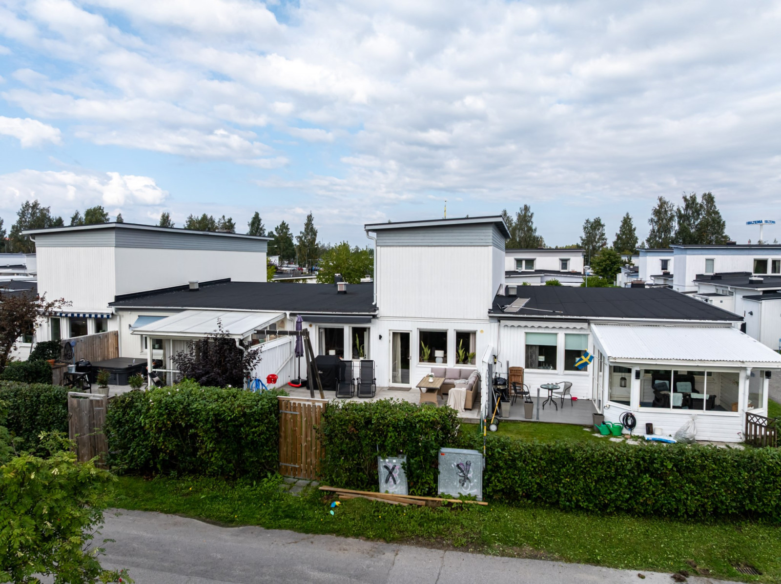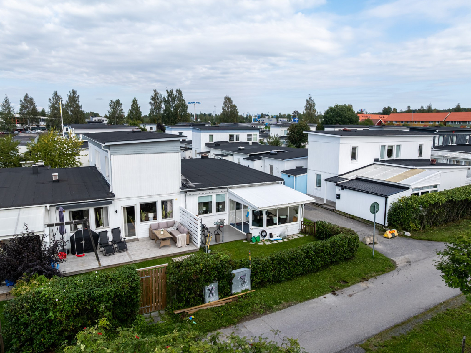 ByggnadstypRadhusByggnadsår1975FasadTräFönster2-glasBjälklagTräTakPappGrundBetongplattaUppvärmningFjärrvärmeVatten/avloppKommunalt vatten året om. Kommunalt avloppVentilationMekanisk (endast frånluft)Övriga byggnader/utrymmenKallförråd på framsida (ca. 5,5 KVM)TV- och internetanslutning