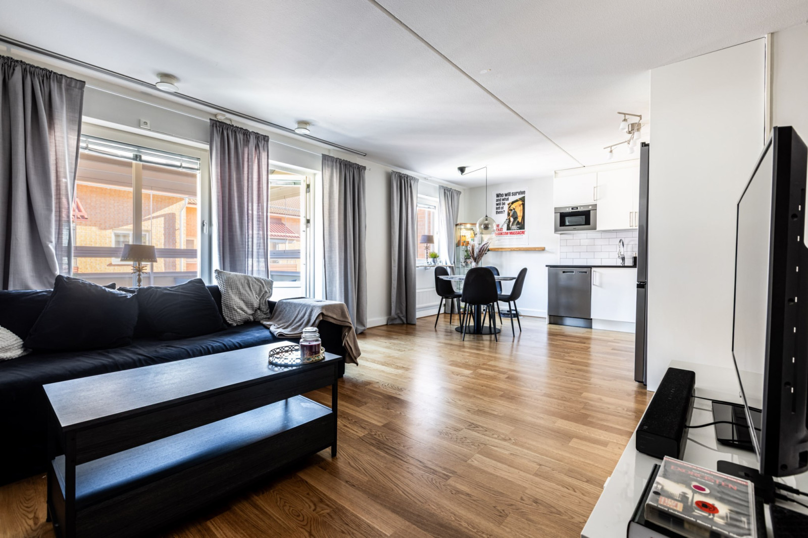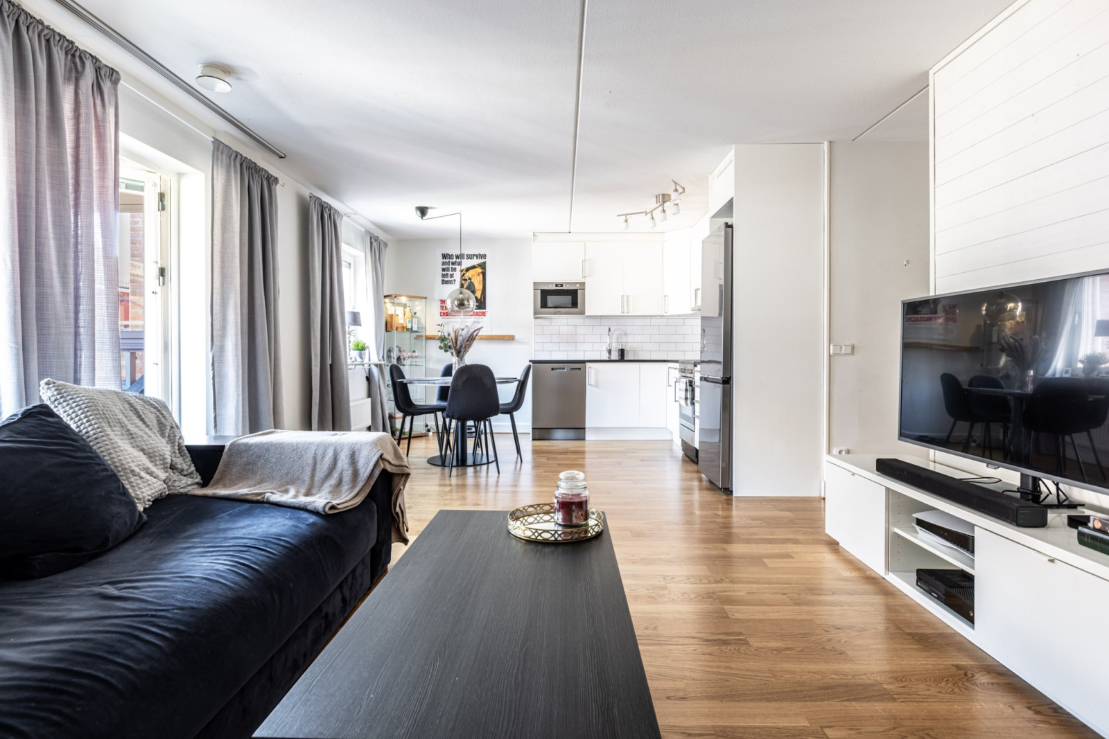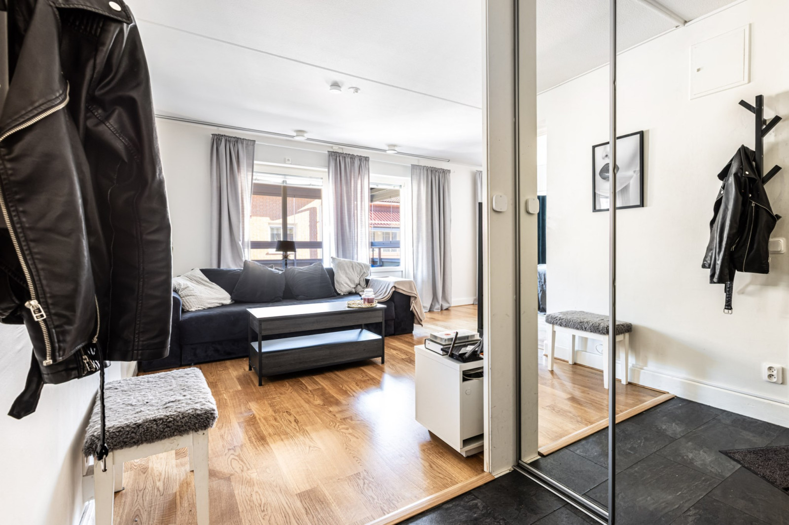 Bostaden har en smart planlösning med rymlig hall och gott om förvaring, ett fräscht nyrenoverat (2025) badrum samt ett stilrent och modernt kök med fina arbetsytor och plats för matbord. Köket ligger i öppen planlösning mot det ljusa vardagsrummet vilket skapar en luftig och social atmosfär. Från vardagsrummet når du den stora balkongen som förlänger boendet och bjuder på utsikt och morgonsol.
