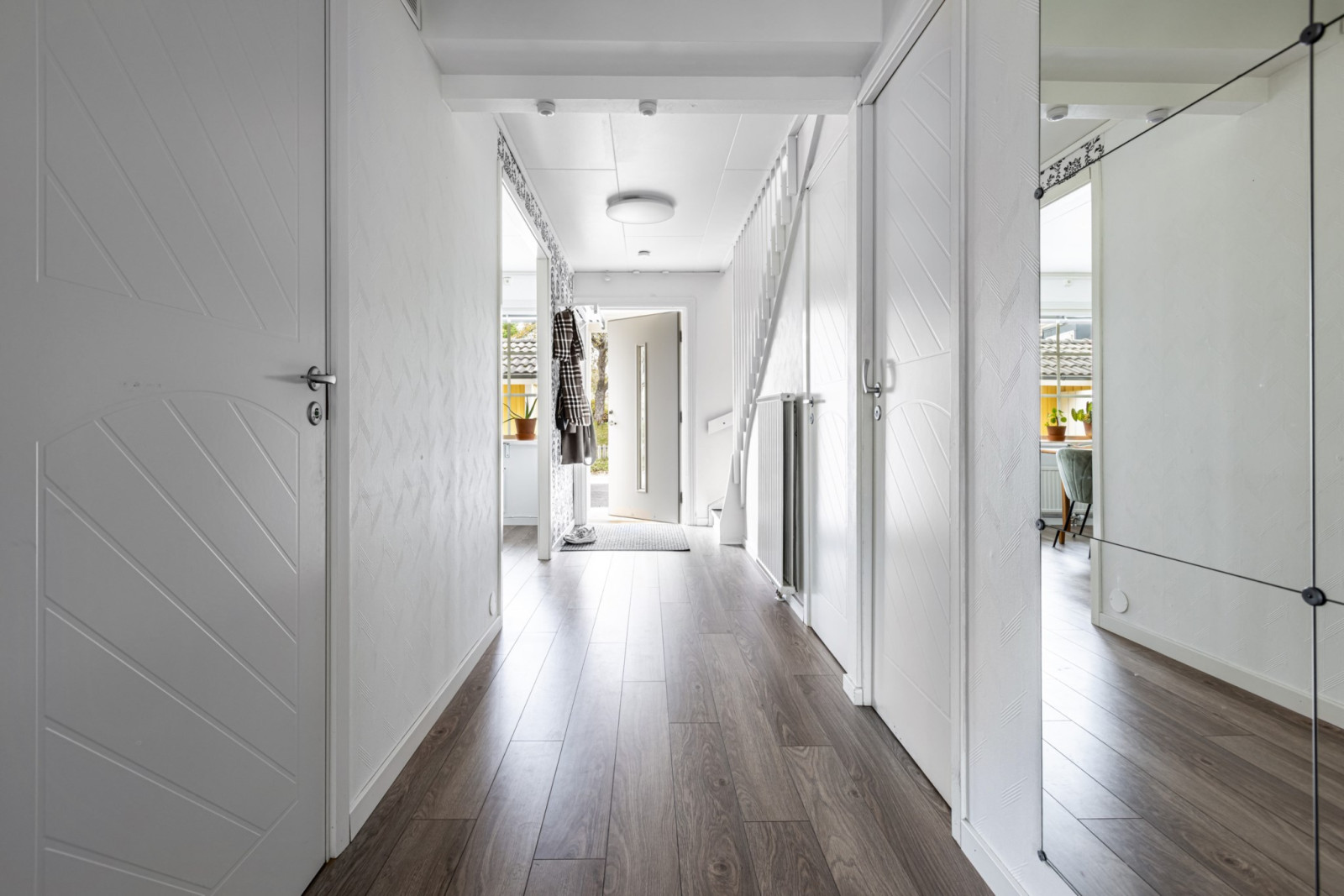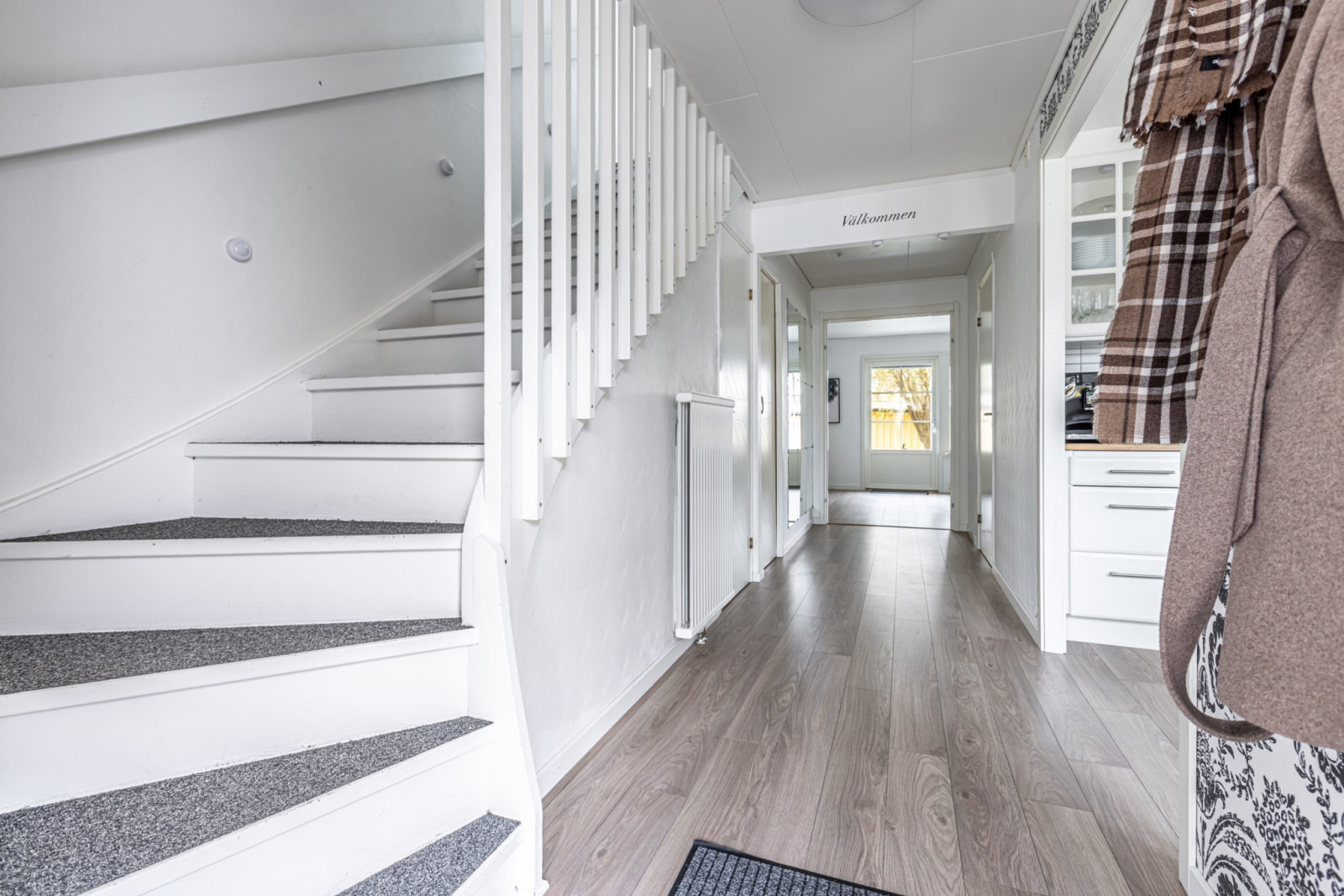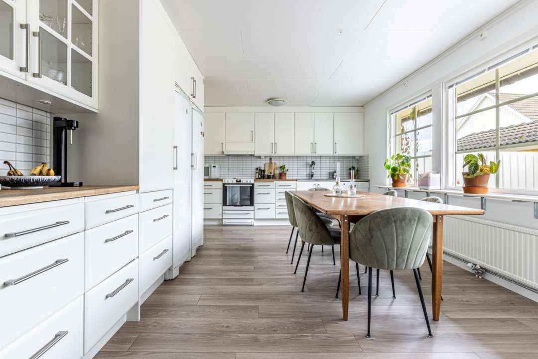 Interiört möts ni av ett ljust och inbjudande hem med gott om förvaring och praktiska lösningar. Här finns fint kök, trevliga sällskapsytor och bra sovrum för både stora och små.