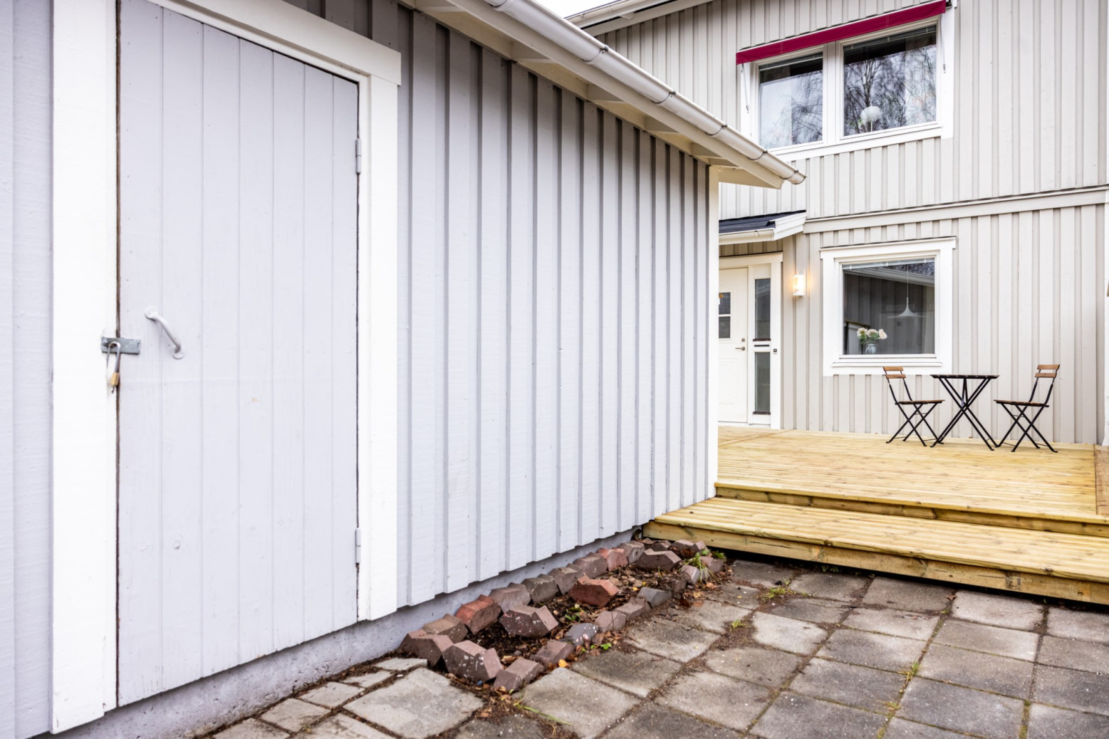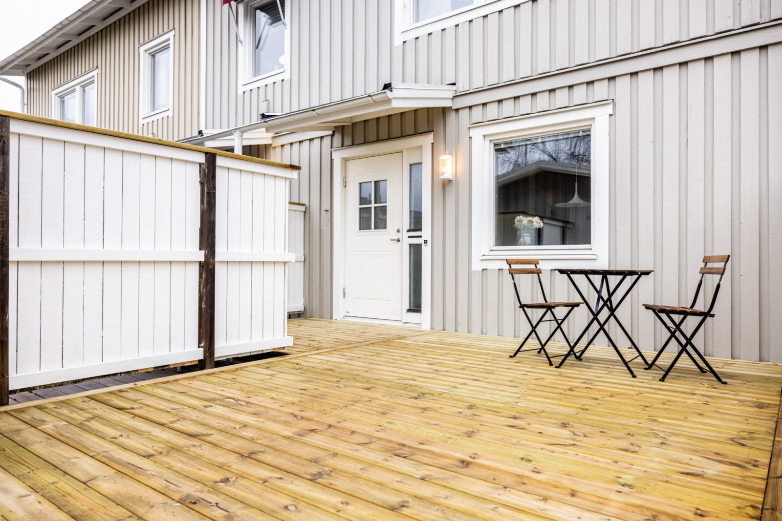 Från vardagsrummet når du altanen i norrläge där du kan njuta av lugnet och skuggan under varma dagar – perfekt för sommarens middagar och avkoppling. På framsidan finns ytterligare en altan i soligt söderläge, perfekt för soldyrkaren under varma sommardagar.
