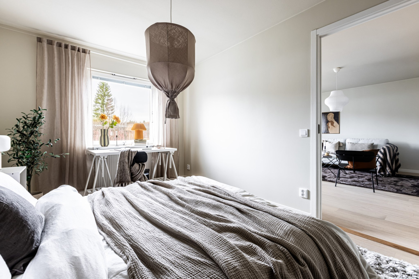 Sovrummet måttar god storlek och här har men plats för allt man kan tänkas behöva, en större säng med tillhörande nattduksbord, skrivbord och annat möblemang som önskas.