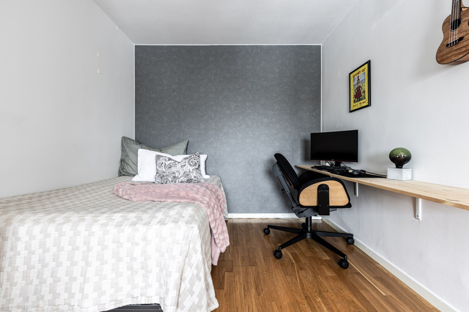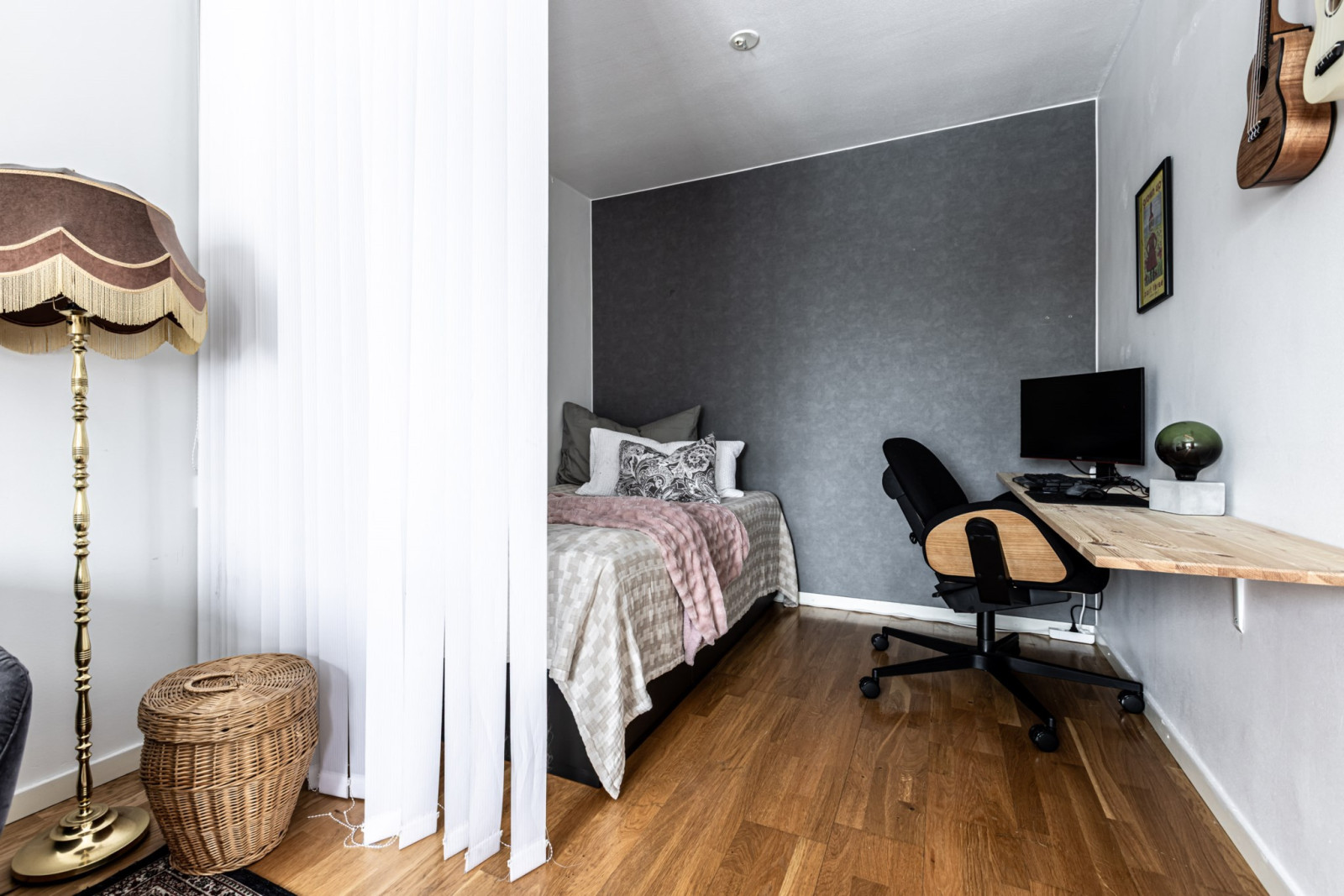 Sovalkoven har plats för dubbelsäng och skrivbord eller förvaringsmöbler om så önskas.-