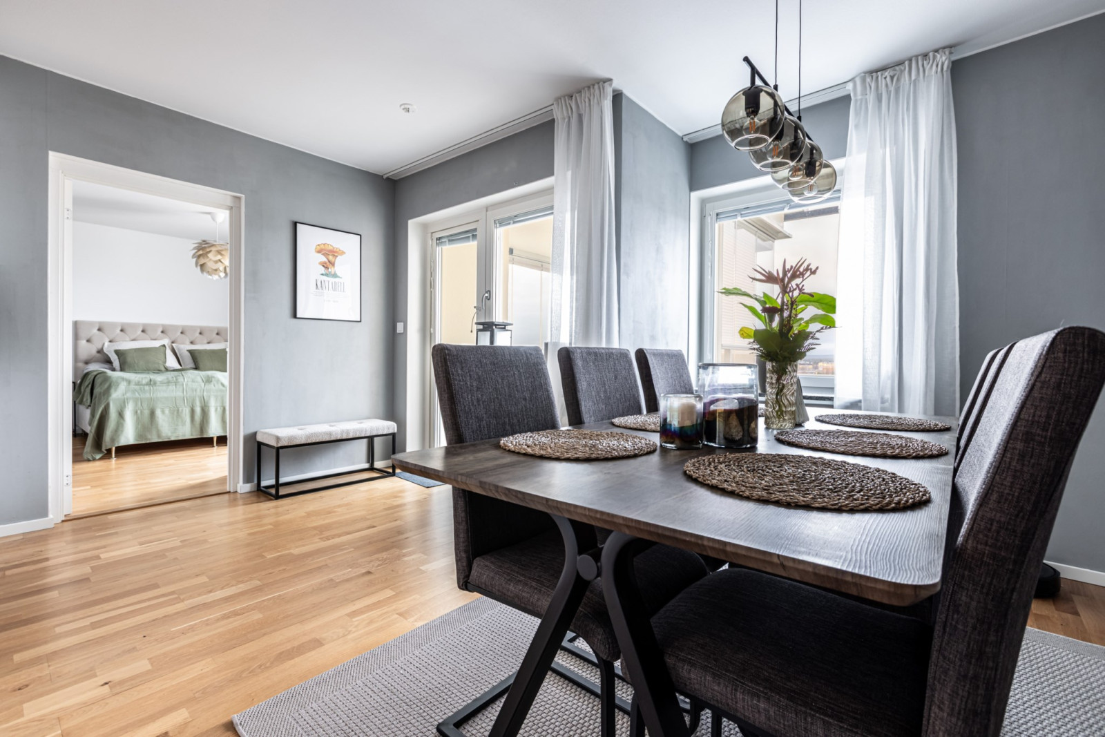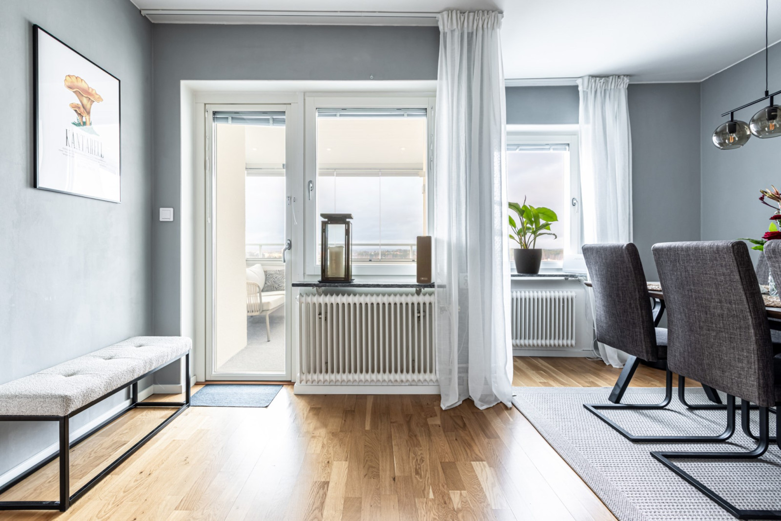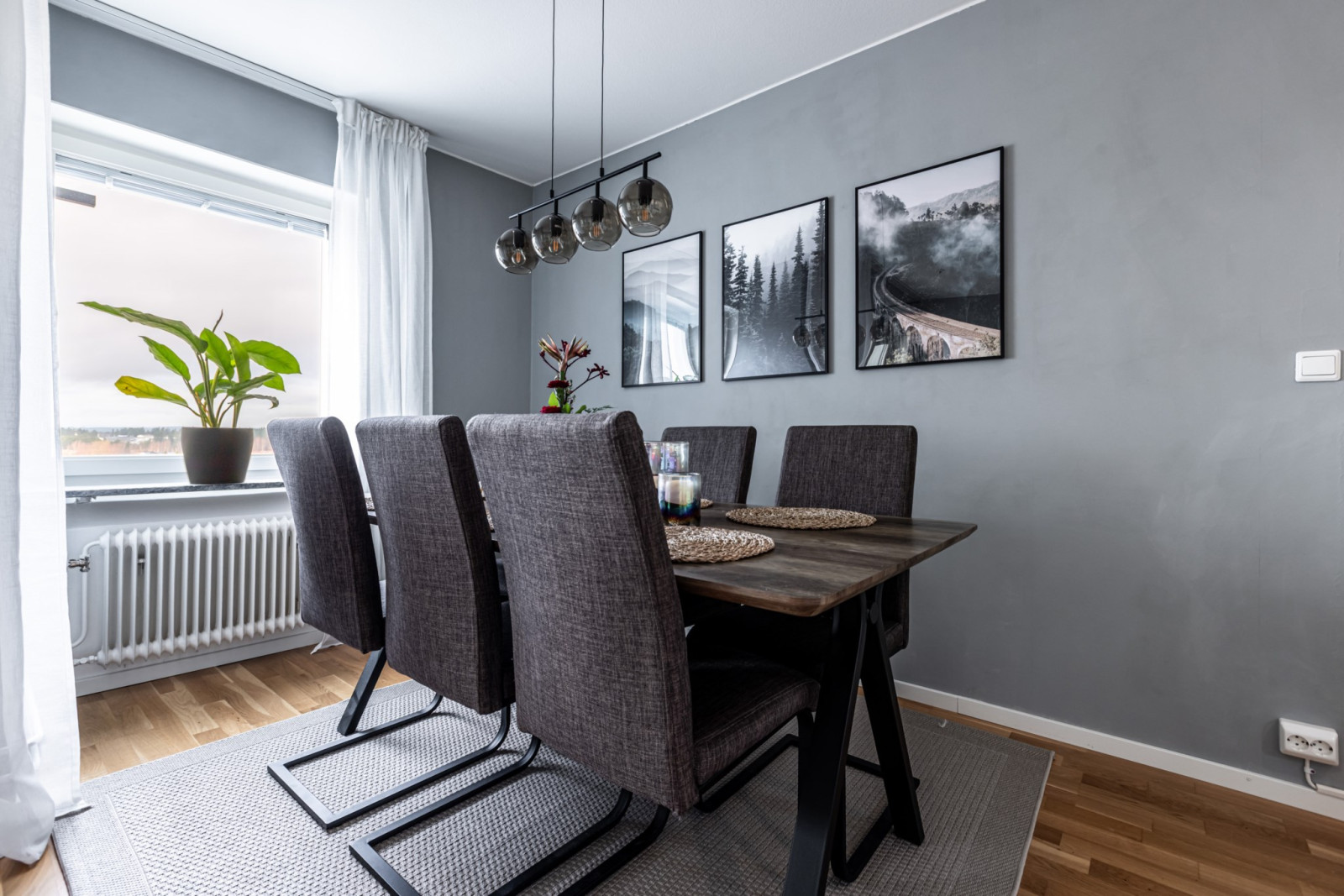 Högst upp i huset ligger denna renoverad trerummare på 74 kvm med fantastisk utsikt över Umeå stad. Denna tidigare fyra är ommodellerad till en generös trerummare med rymlig matplats och extra förvaring. Lägenheten har genom åren stilfullt renoverats med bland annat ljust kök, ekparkettgolv och trivsamma ytskikt med bland annat akustikpanel. Ett helkaklat badrum i samband med föreningens stambyte samt ny tvättmaskin och inredning 2025. I anslutning till köket ligger den utbyggda och inglasade balkongen. På eftertraktade Skogsbrynet bor ni med direkt anslutning till Gammliaskogen, ett populärt område året runt för natur- och kulturupplevelser, rekreation och idrott. Här finns närhet till matbutiker, handelsområde, förskolor- och skolor, Umeå Universitet och NUS. Brf Skogsbrynet är en populär och stabil förening! Varmt välkomna på visning!