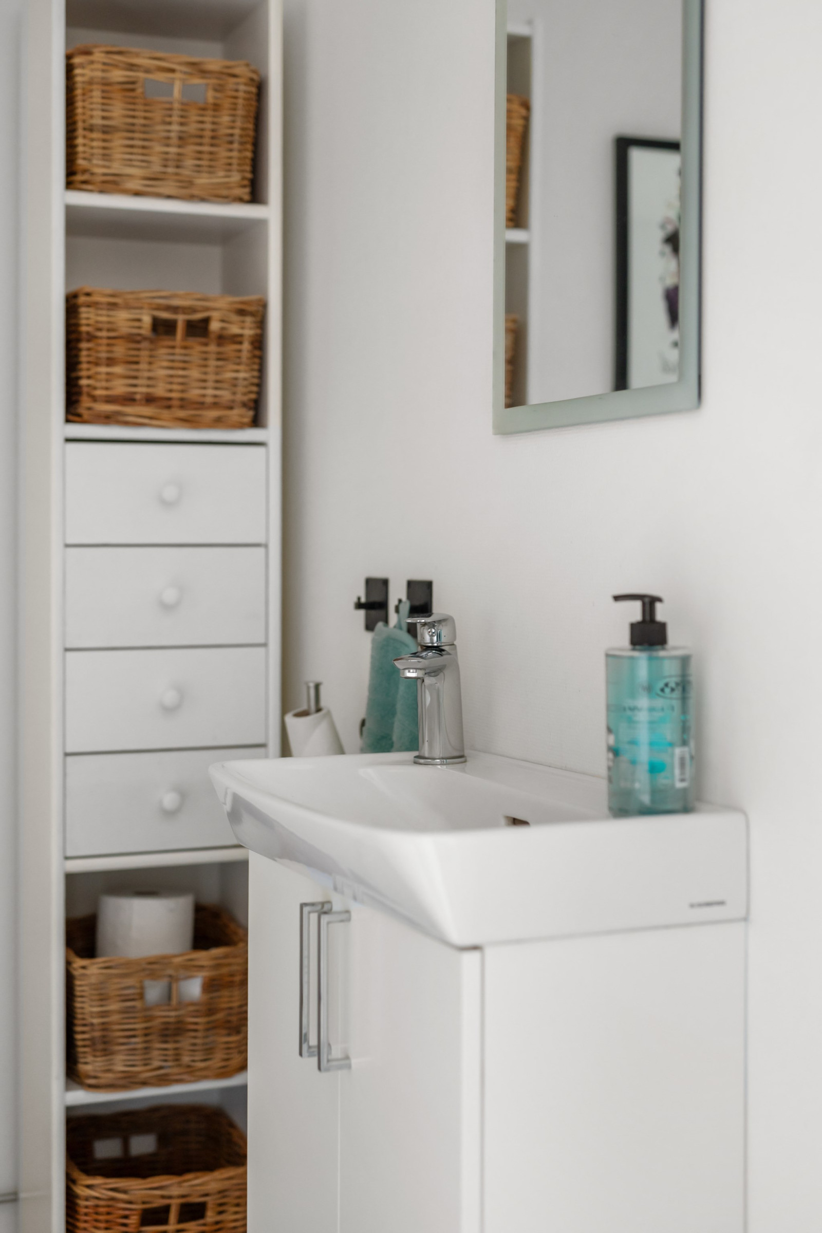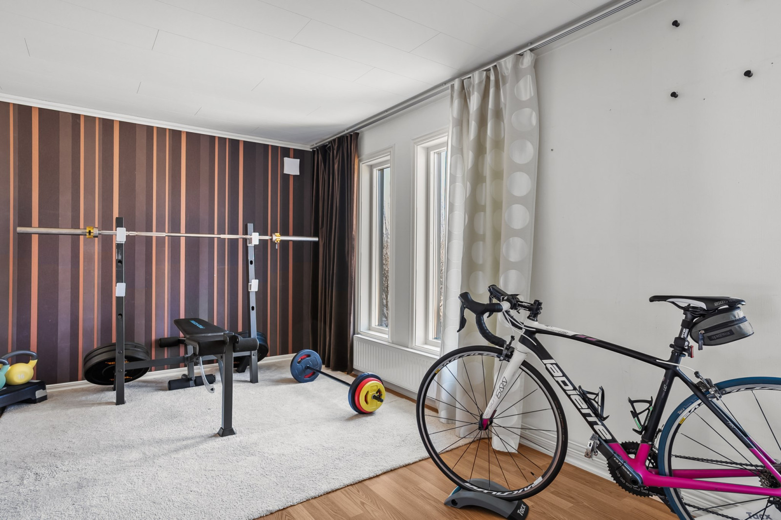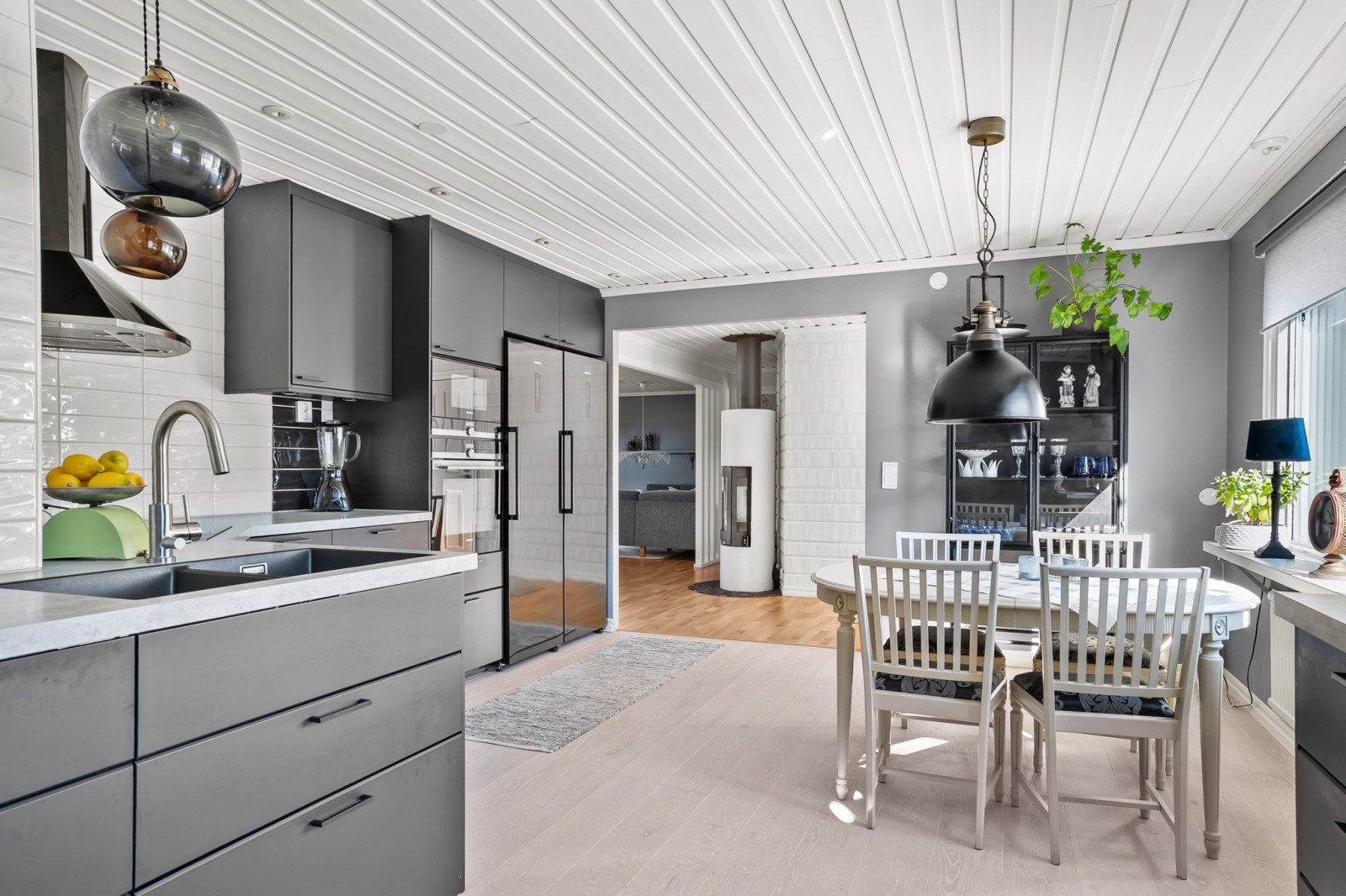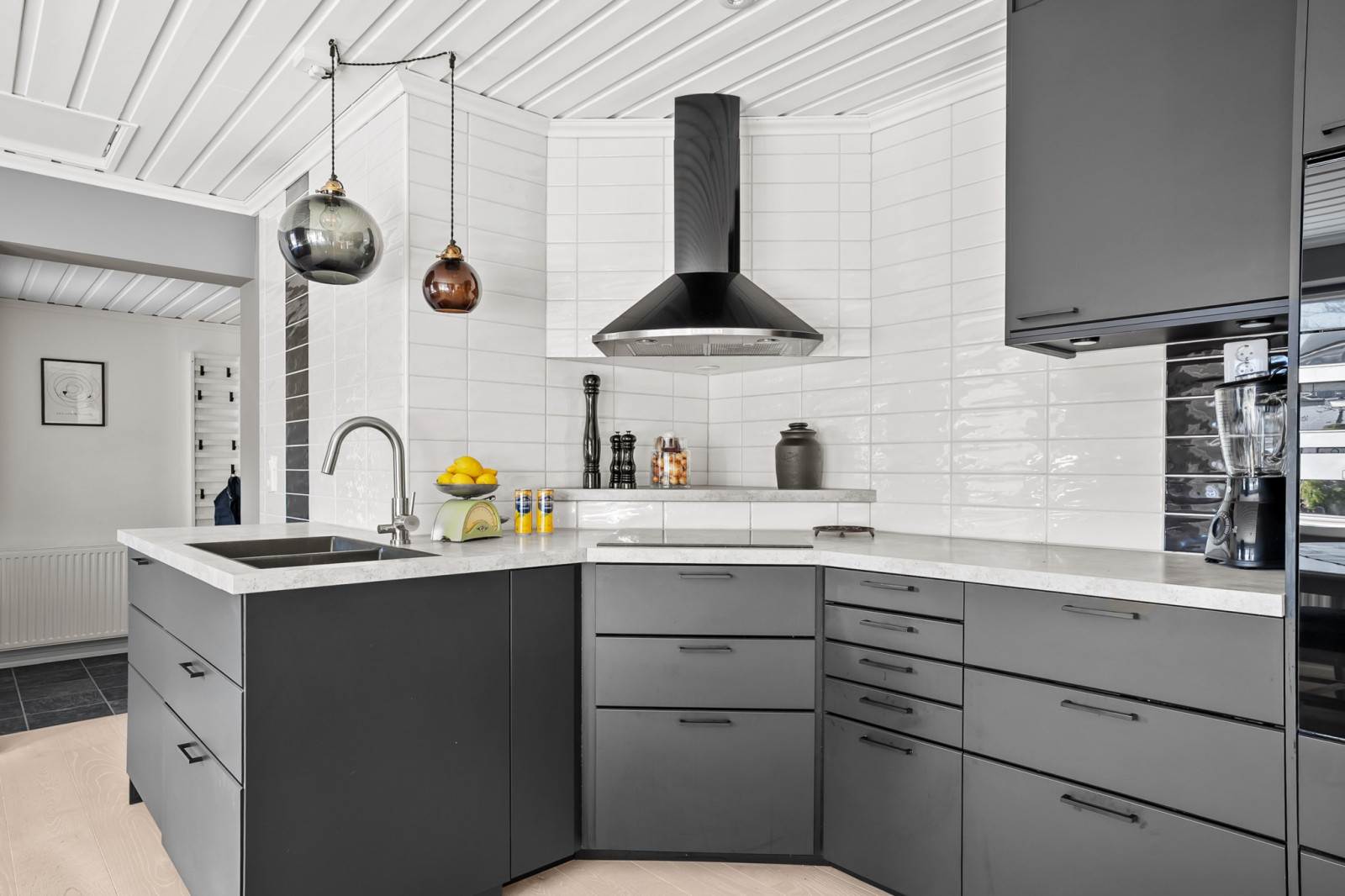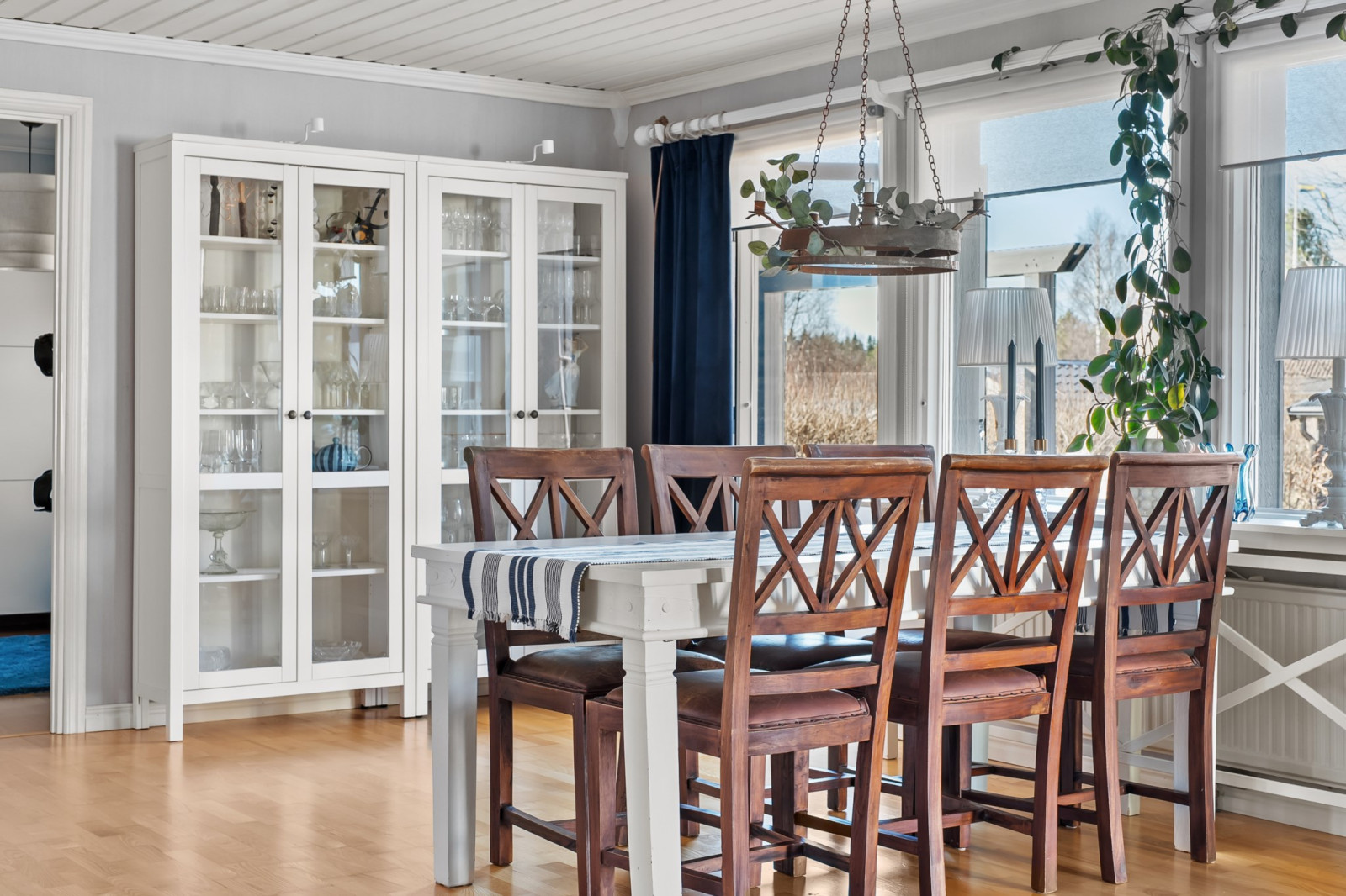 Köket är praktiskt utformat med goda arbetsytor och förvaring, perfekt för såväl vardagsmatlagning som helgens middagar. I anslutning finns tvättstuga med smidig funktionalitet i vardagen. Bostaden erbjuder både ett badrum och en separat WC, vilket underlättar för familjelivet.