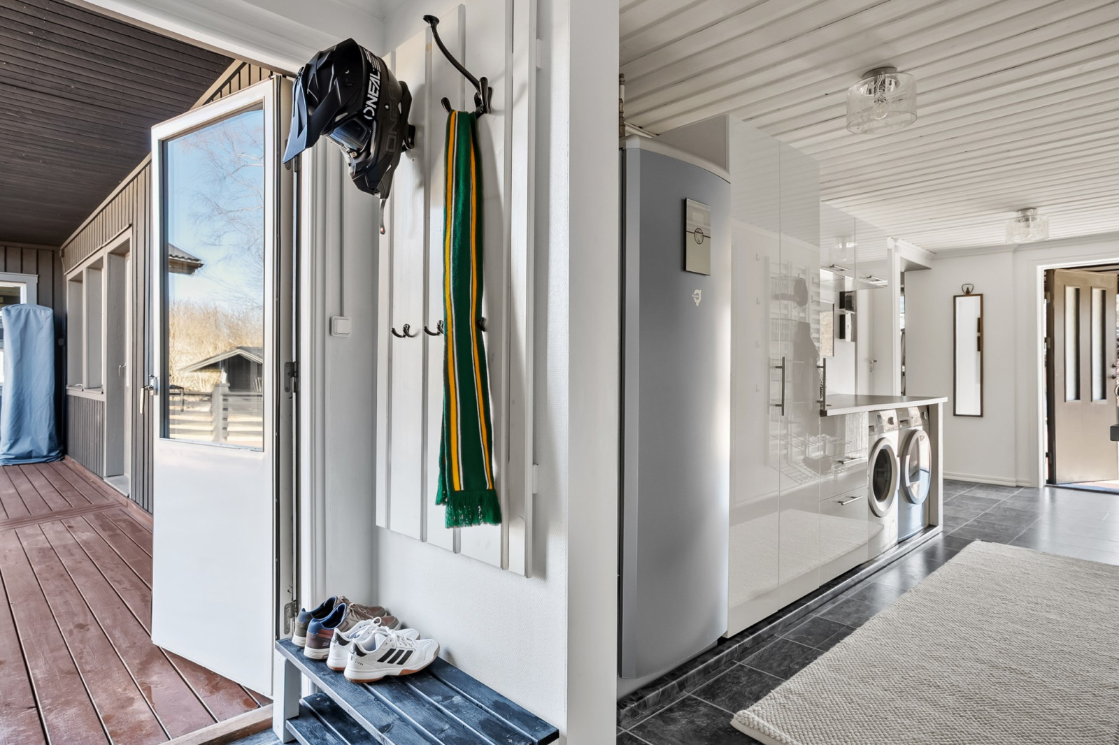 Från huset når du även garaget – bekvämt och uppskattat under årets kallare månader.