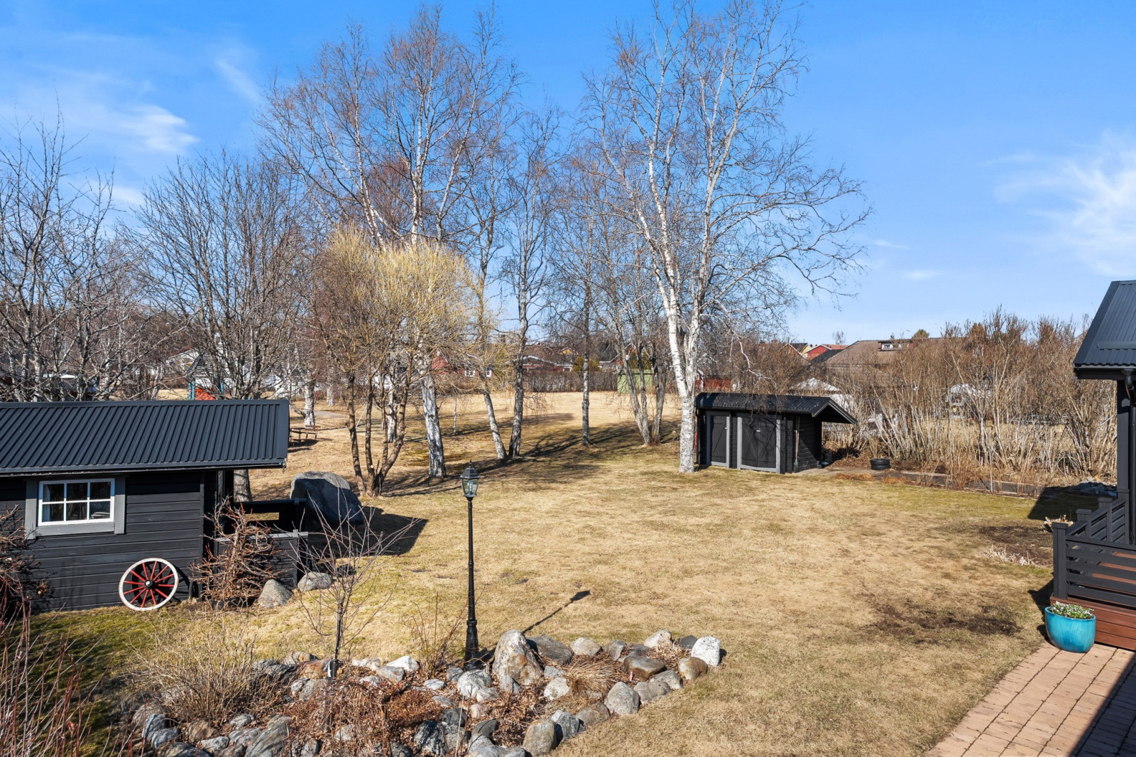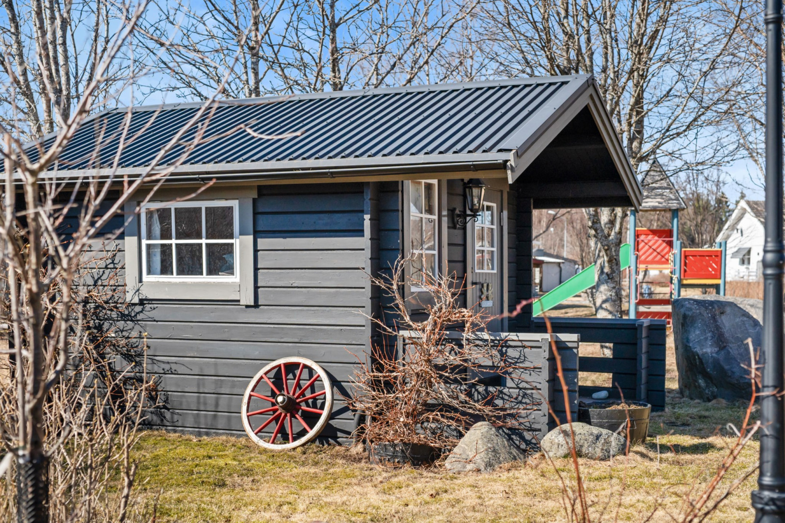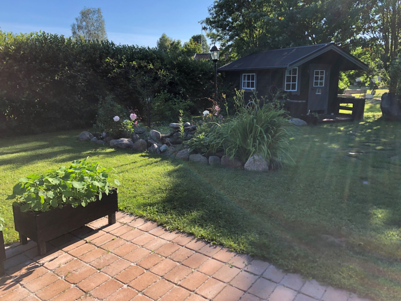 På baksidan väntar en stor och härlig tomt med en generös altan i västerläge. Här kan du njuta av eftermiddags- och kvällssol i en privat och rofylld miljö – perfekt för grillkvällar, umgänge eller lugna stunder i solen.