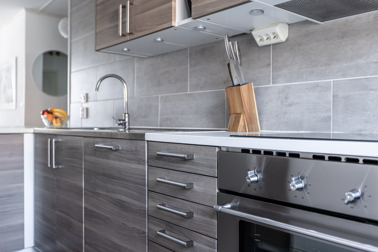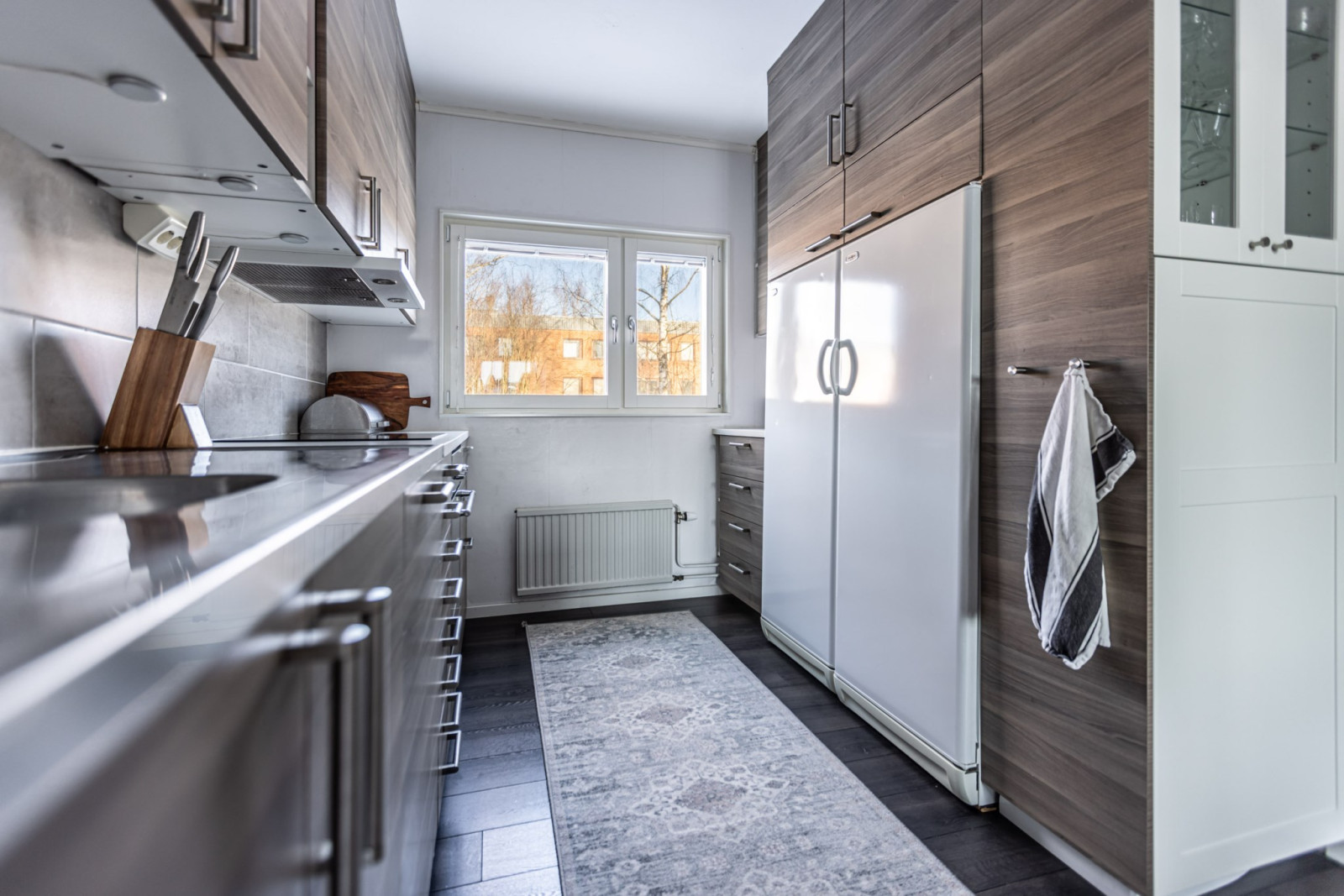 Rymligt kök med gott om arbetsytor och förvaring i form av över- och underskåp samt lådor. Köket är försett med diskmaskin, fullstor kyl och frys, induktionshäll, ugn och köksfläkt.