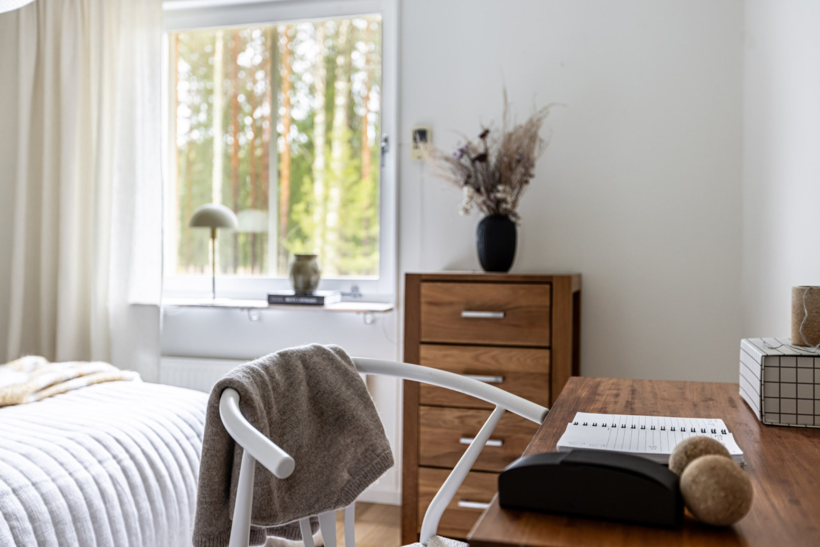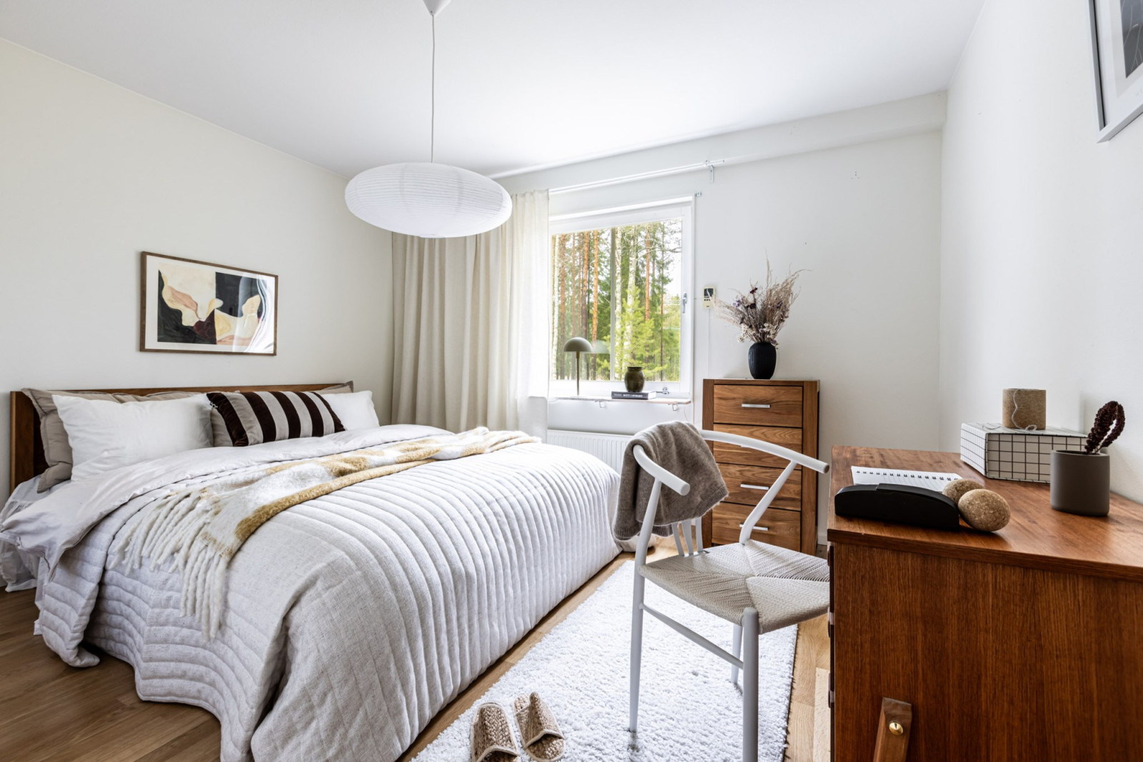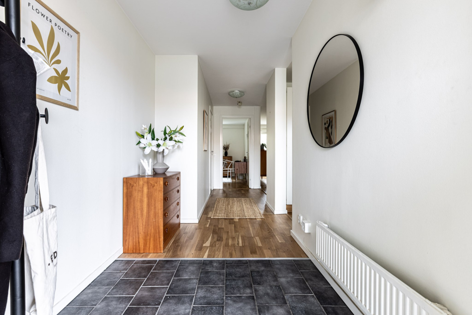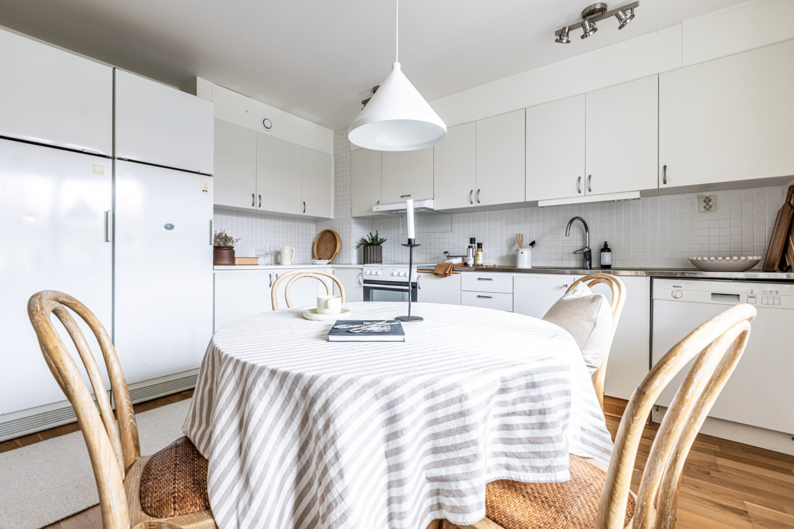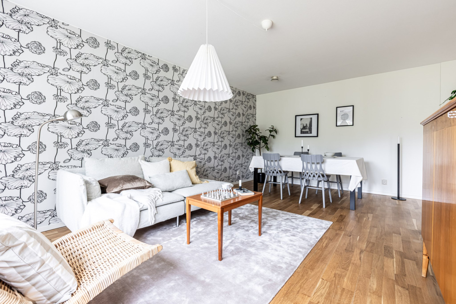 Lägenheten erbjuder en genomtänkt planlösning med generösa ytor och fint ljusinsläpp. Det rymliga vardagsrummet är hemmets naturliga samlingspunkt, med stora fönsterpartier och utgång till den trevliga altanen i norrläge. Här kan du njuta av lugnet och den rogivande utsikten mot skogen – en perfekt plats för morgonkaffet, middagar under sommarkvällarna eller en stunds avkoppling i grönskan.
