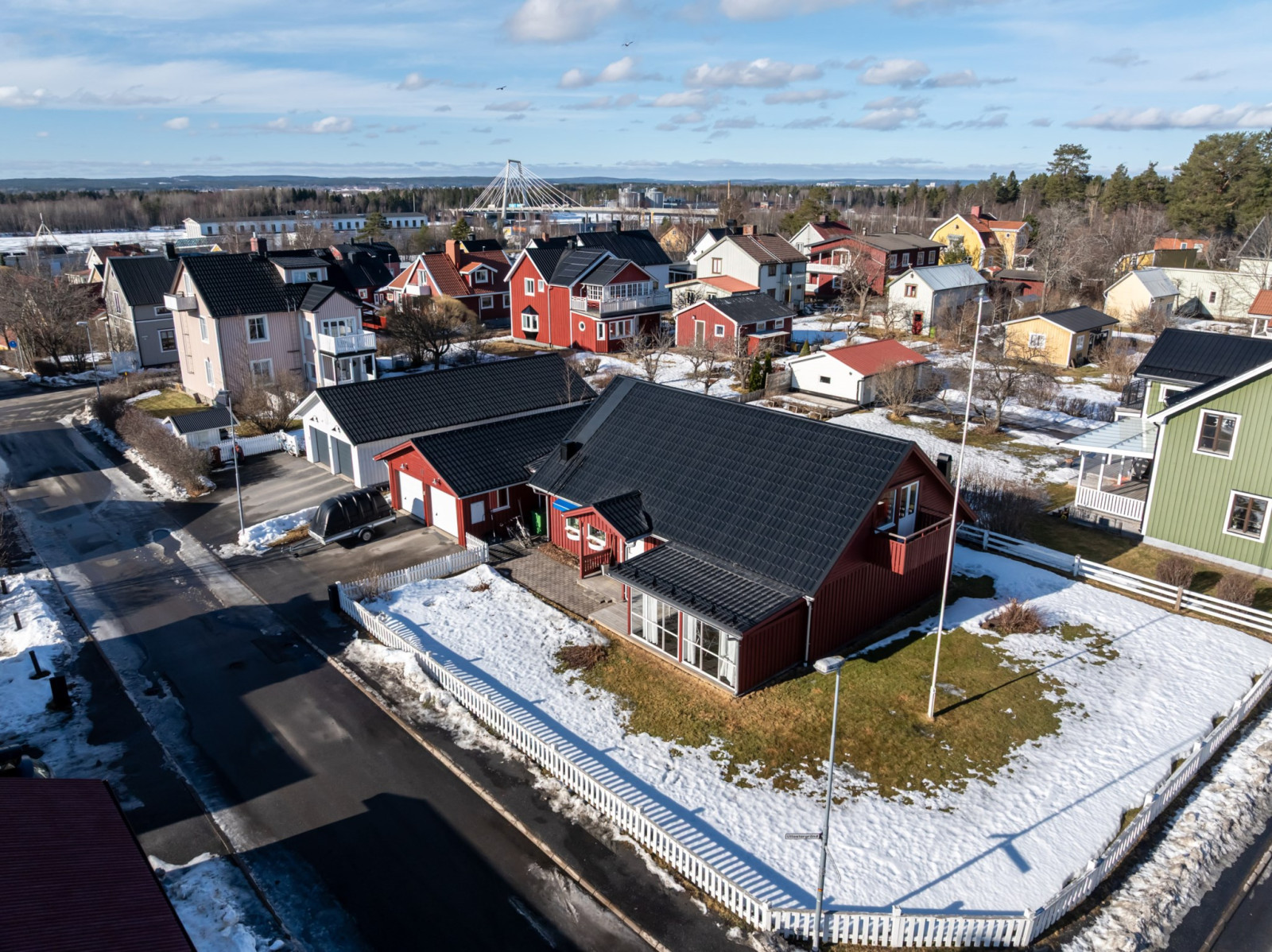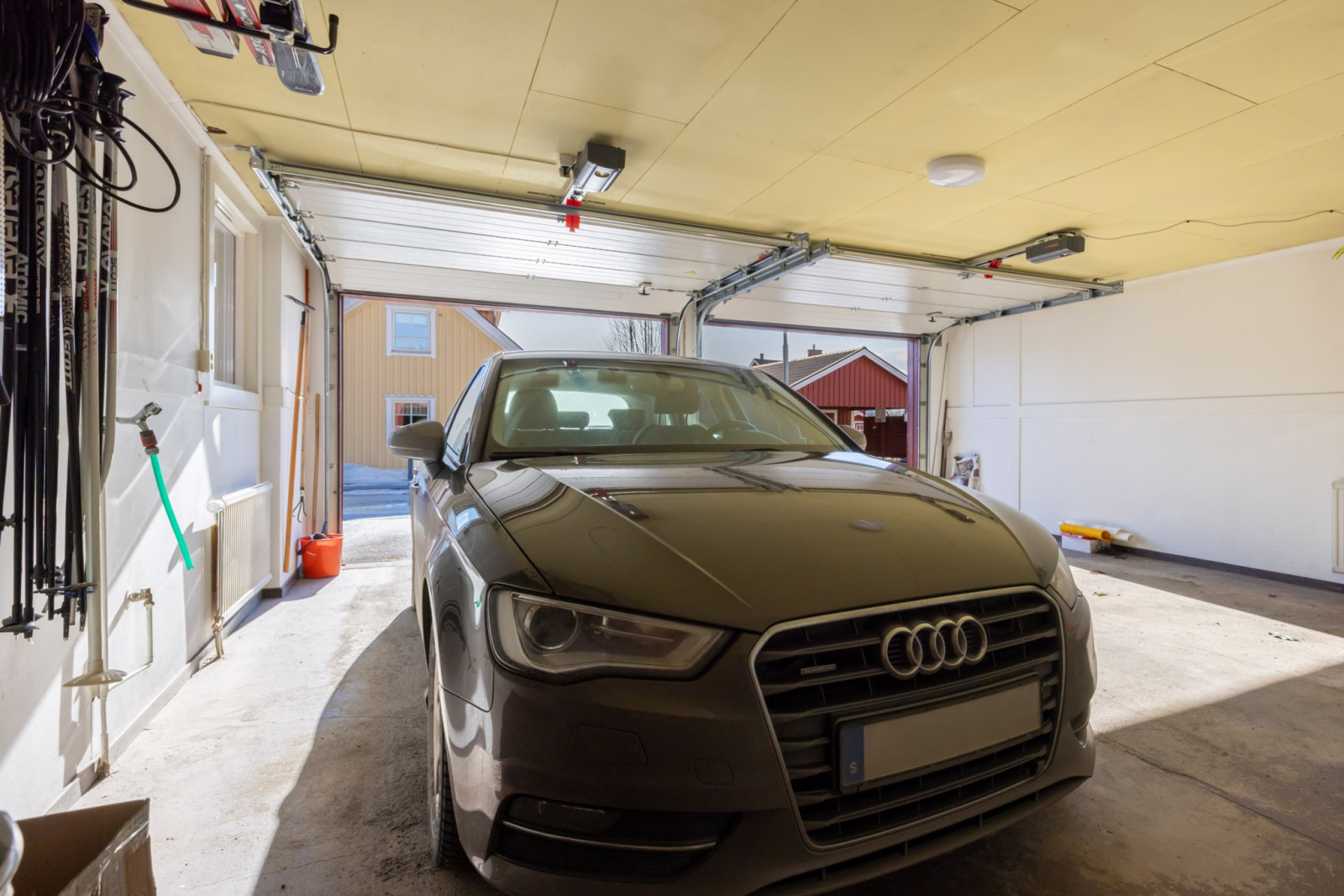 På tomten finns dessutom ett anslutet varmt dubbelgarage med elportar, vilket ger både bekvämlighet och gott om plats för två bilar, förvaring eller hobbyverksamhet.