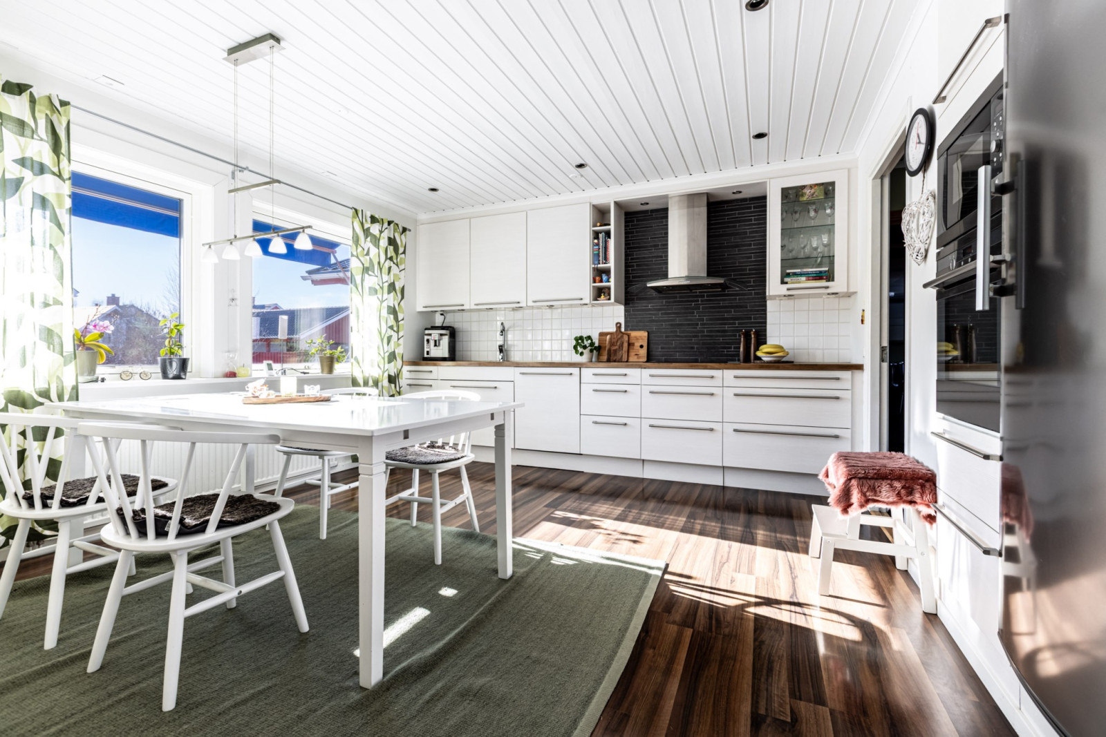 Bostaden rymmer hela fyra sovrum och har en planlösning som skapar bra balans mellan sociala ytor och mer privata delar av huset. Här finns gott om plats för både vardagsliv och umgänge med familj och vänner. De sociala ytorna bjuder in till trevliga stunder tillsammans.