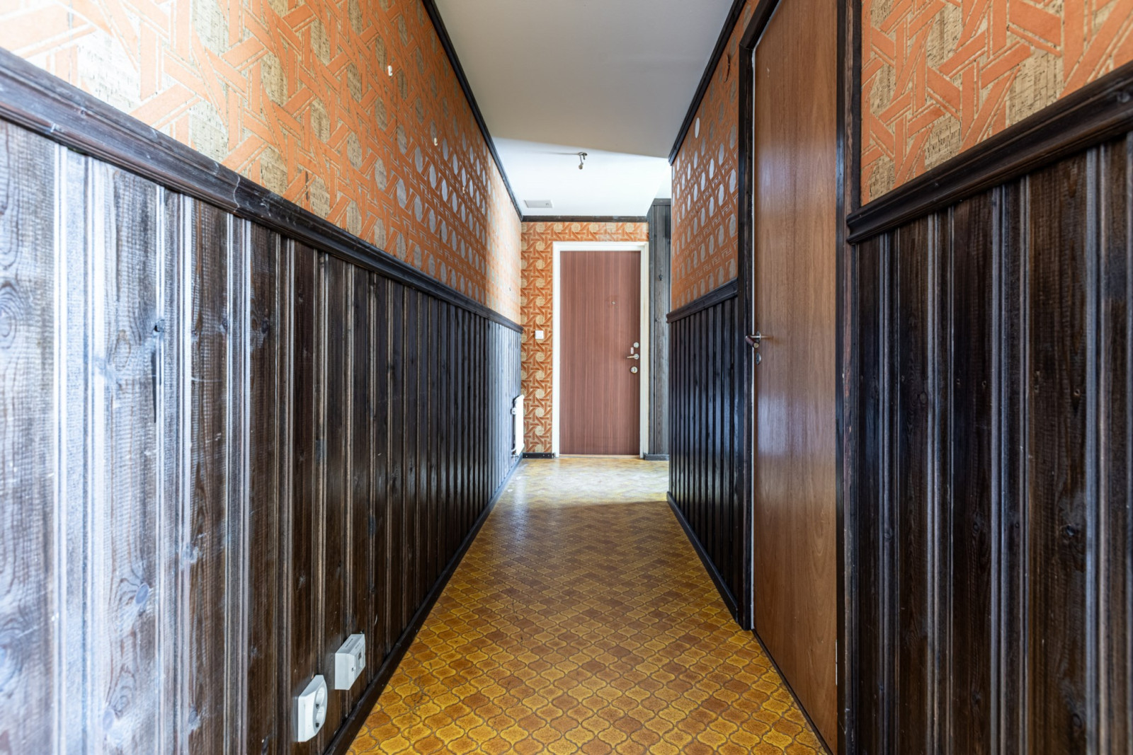 Lägenheten erbjuder ett rymligt vardagsrum, separat kök med matplats, två sovrum samt goda förvaringsmöjligheter via förråd. Samtliga ytskikt och kök är i behov av renovering. Badrummet med kakel och klinker har ett äldre utförande med tvättmöjligheter.