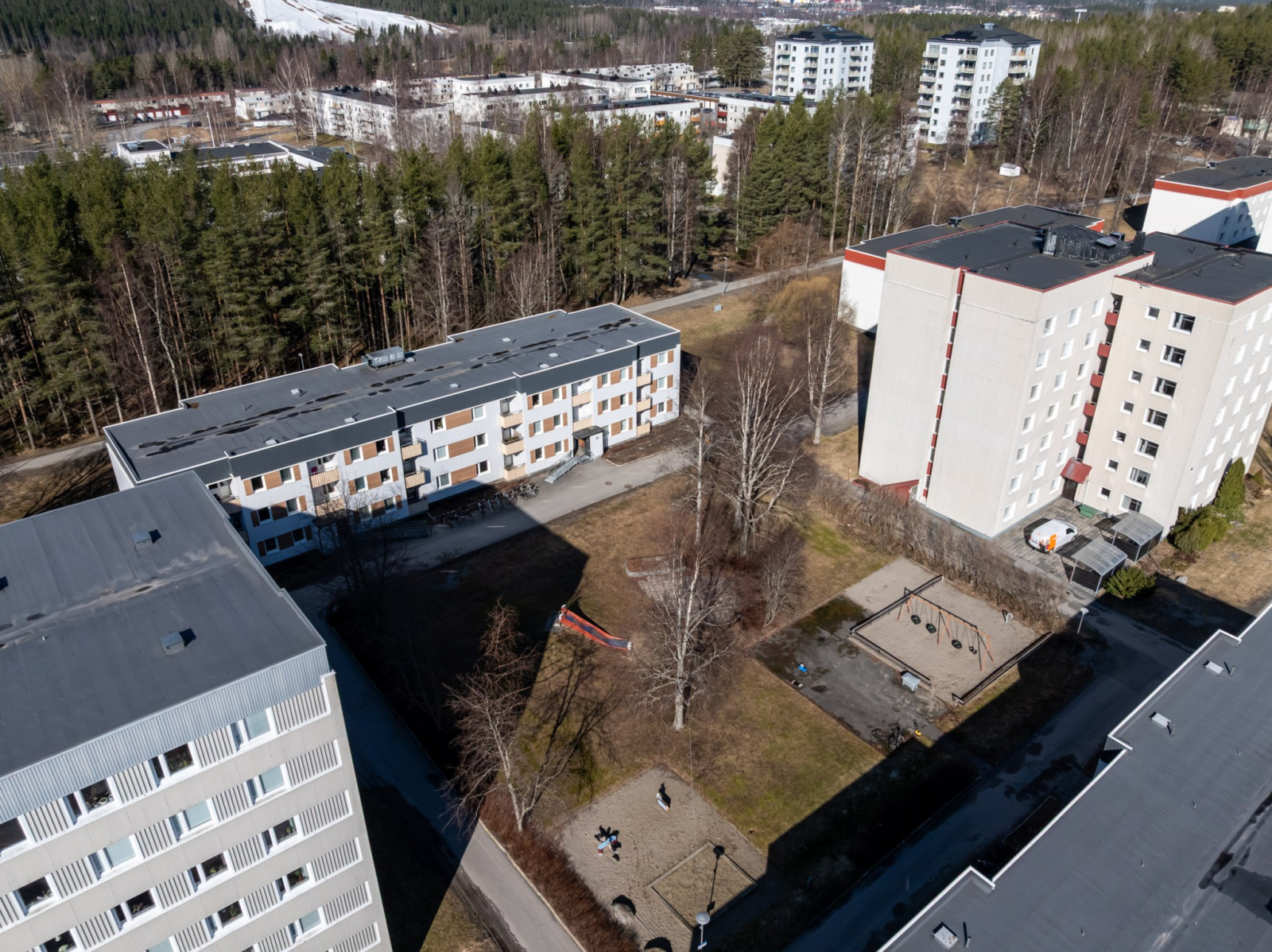 På Mariedal finns ett handels- och verksamhetsområde som kopplar till Ersboda och i dess västra del i huvudsak tät småhusbebyggelse medan låg sluten bebyggelse dominerar i öst. Här finns en bredd med 1970-tals flerfamiljshus som kombinerar trä och tegel och tätt liggande rad-, par-, och kedjehus. Marieberg präglas av avsaknad av genomfartstrafik, här finns återvändsgränder till markparkeringar med korsande vägar för kollektivtrafik och väl utbyggt gång och cykelnät. Bebyggelsen är låg och sluten bebyggelse i trä med två- till tre våningar. Mariehem är byggt strikt utifrån trafiksepareringens principer med matning utifrån och med plats för människor och lek helt fredad från biltrafik. Flerfamiljshusen här har medelhög täthet och är av typen ”hus i park” med vitkalkade fasader och gårdar för lek och umgänge. Här och var finns skogspartier bevarade samt parker och dungar integrerade i den bebyggda miljön.