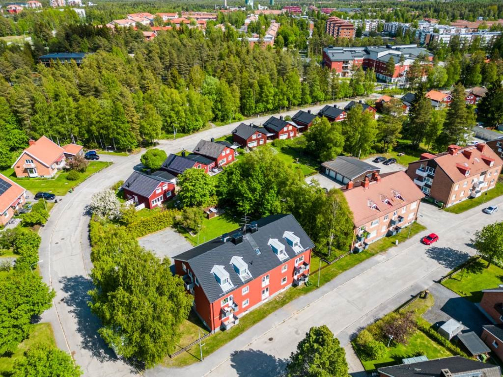 Här bor du i ett lugnt kvarter med en mix av lägenheter och villor, ett stenkast från älven och med närhet till Strömpilsplatsen med bl.a. Ica-Maxi, apotek och populär gymanläggning. Gång- och cykelavstånd till Umeå Universitet och NUS (sjukhus) samt goda bussförbindelser till stan.