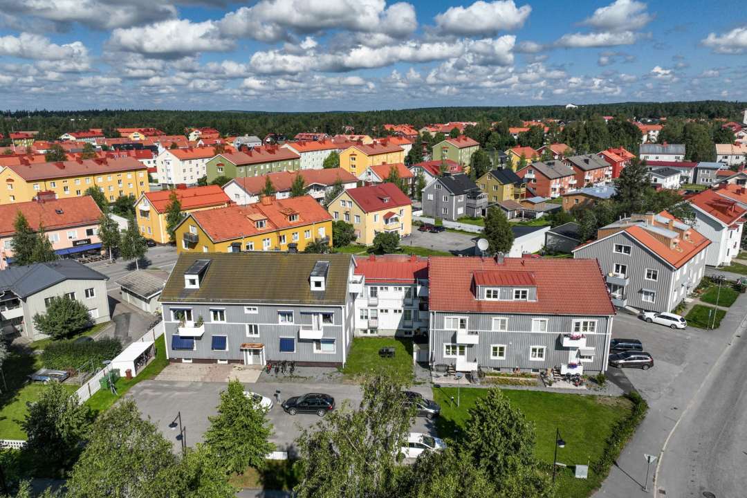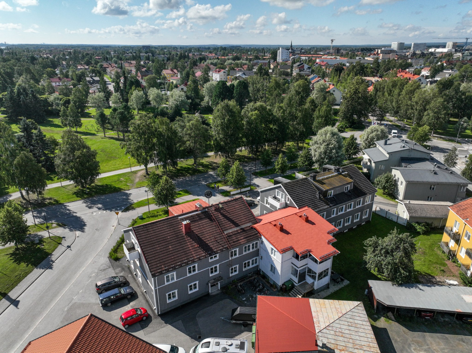 Här finns en blandad bebyggelse av trä och tegel, villor, radhus och hyreshus, fördelade i ett oregelbundet och charmigt gatunät – ett arv från de stadsplaner som lades i stadsdelens ungdom. Och här är vi faktiskt ännu yngre än det redan unga snittet i Umeå.