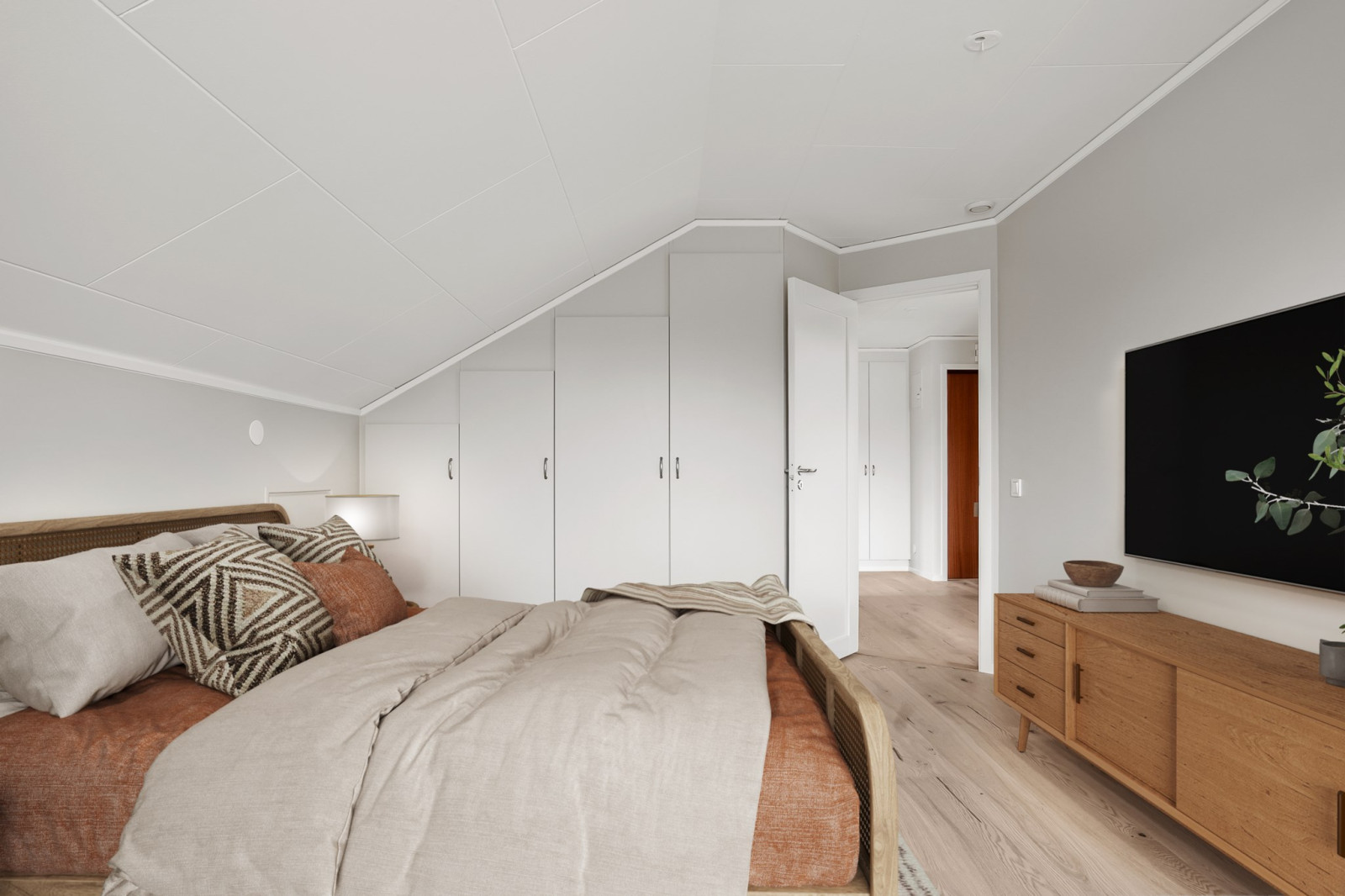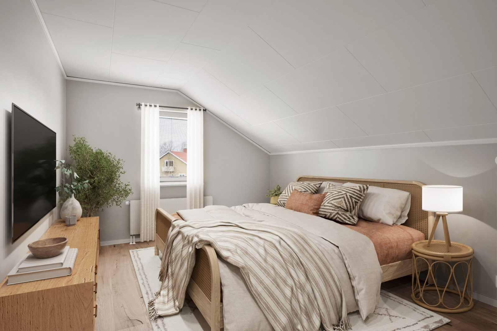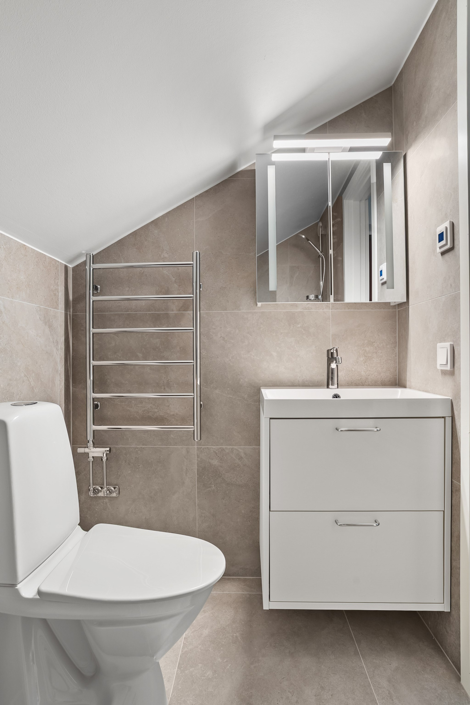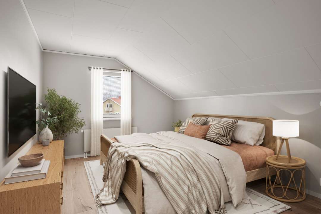 Bostaden präglas av moderna materialval och stilren design, noggrant genomtänkt för att skapa ett hem att trivas i. Den generösa rymden förstärks av snedtak och en charmig vindsatmosfär som ger bostaden en unik karaktär.