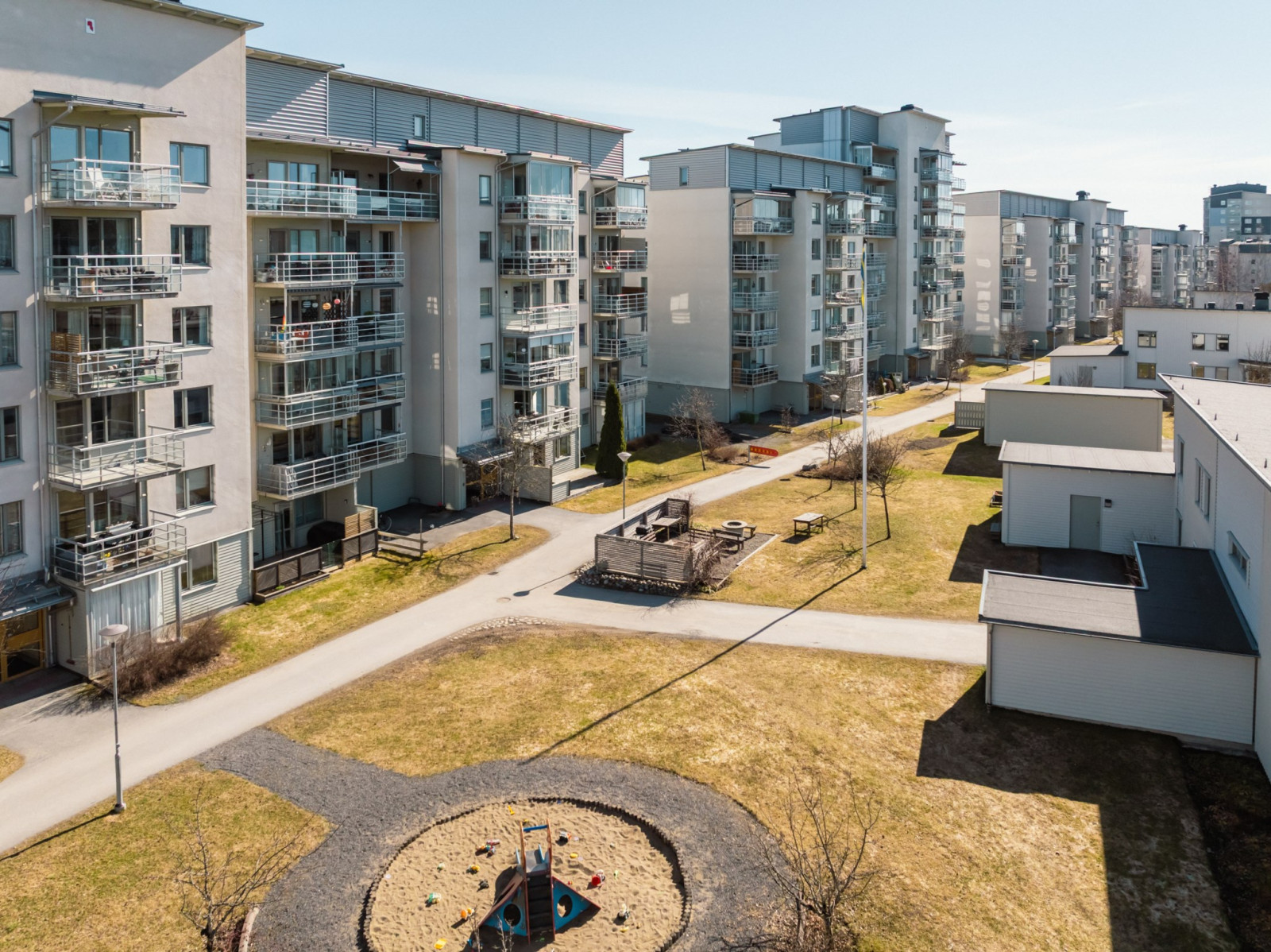 Området består av nyare bostadsrättslägenheter huvudsakligen byggda under mitten och andra halvan av 00-talet. Bebyggelsen utgörs av höghus närmast den hårt trafikerade Kolbäcksvägen, samt lägre byggnader närmare Mariehemsvägen.
